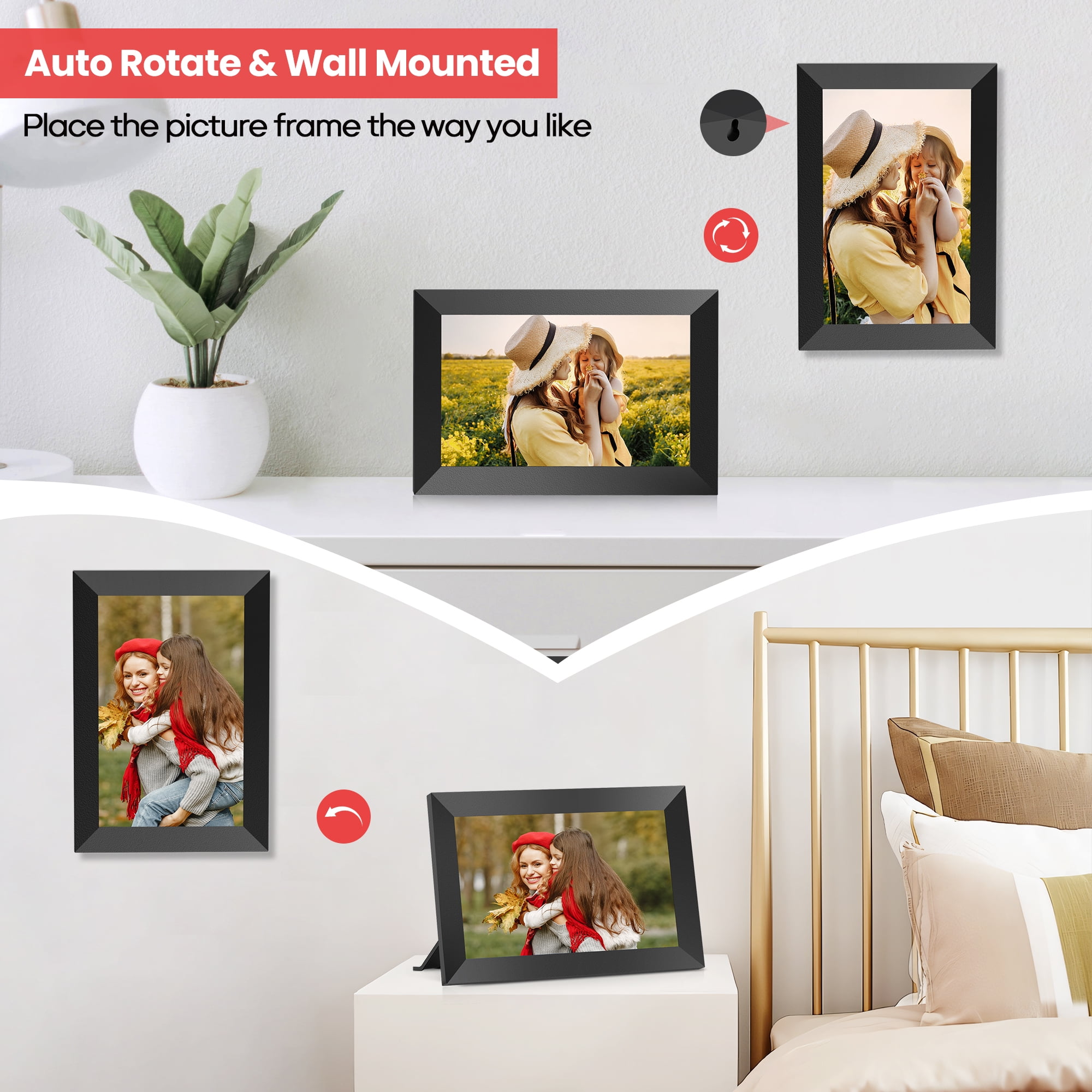 Temash 10.1 inch WiFi Digital Photo Frame, Smart Digital Picture Frames with 32GB Storage & IPS Touch Screen , Auto Rotate Electric Frames Share Instant Picture via Free App, Best Gift for Loved One