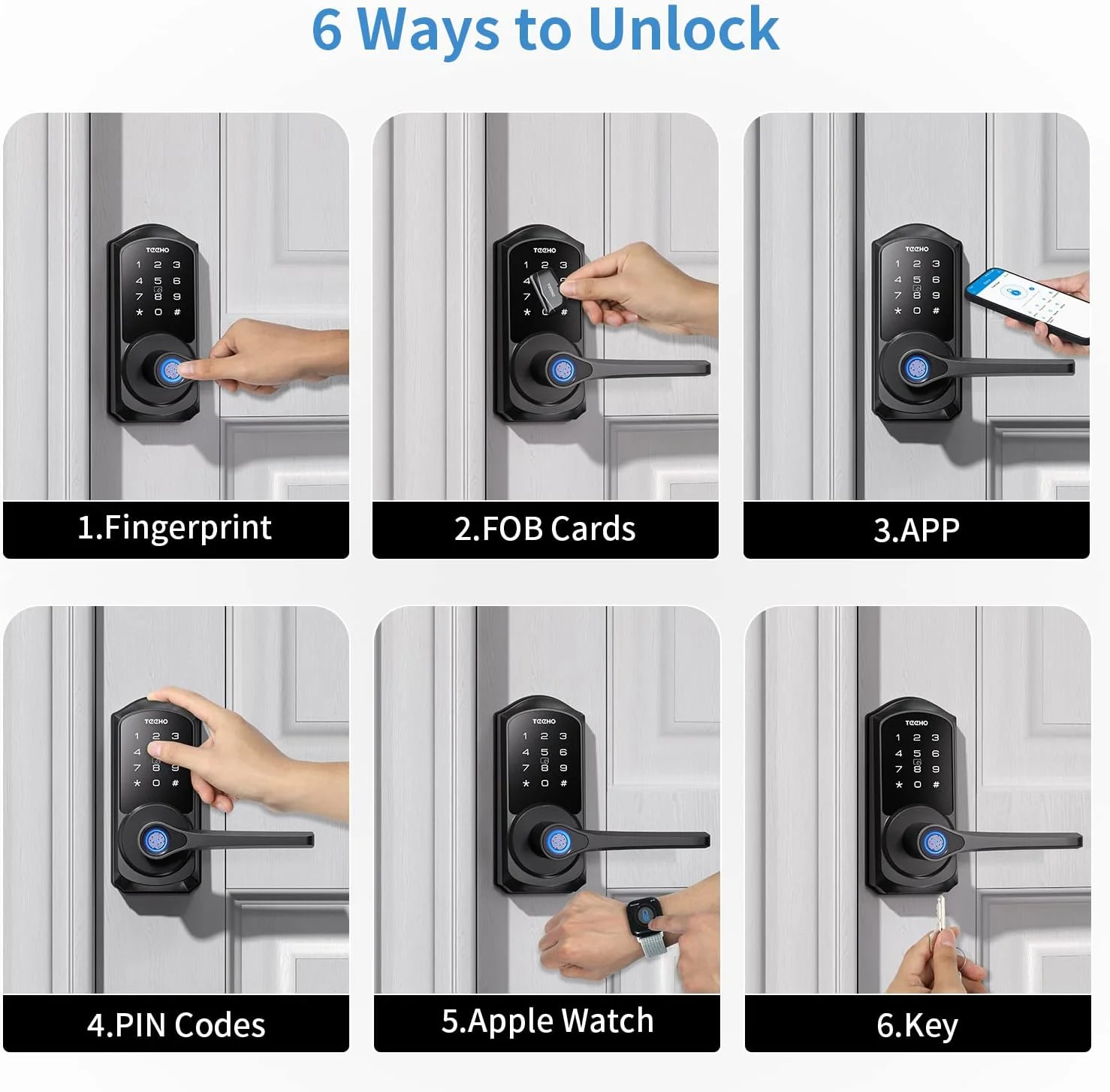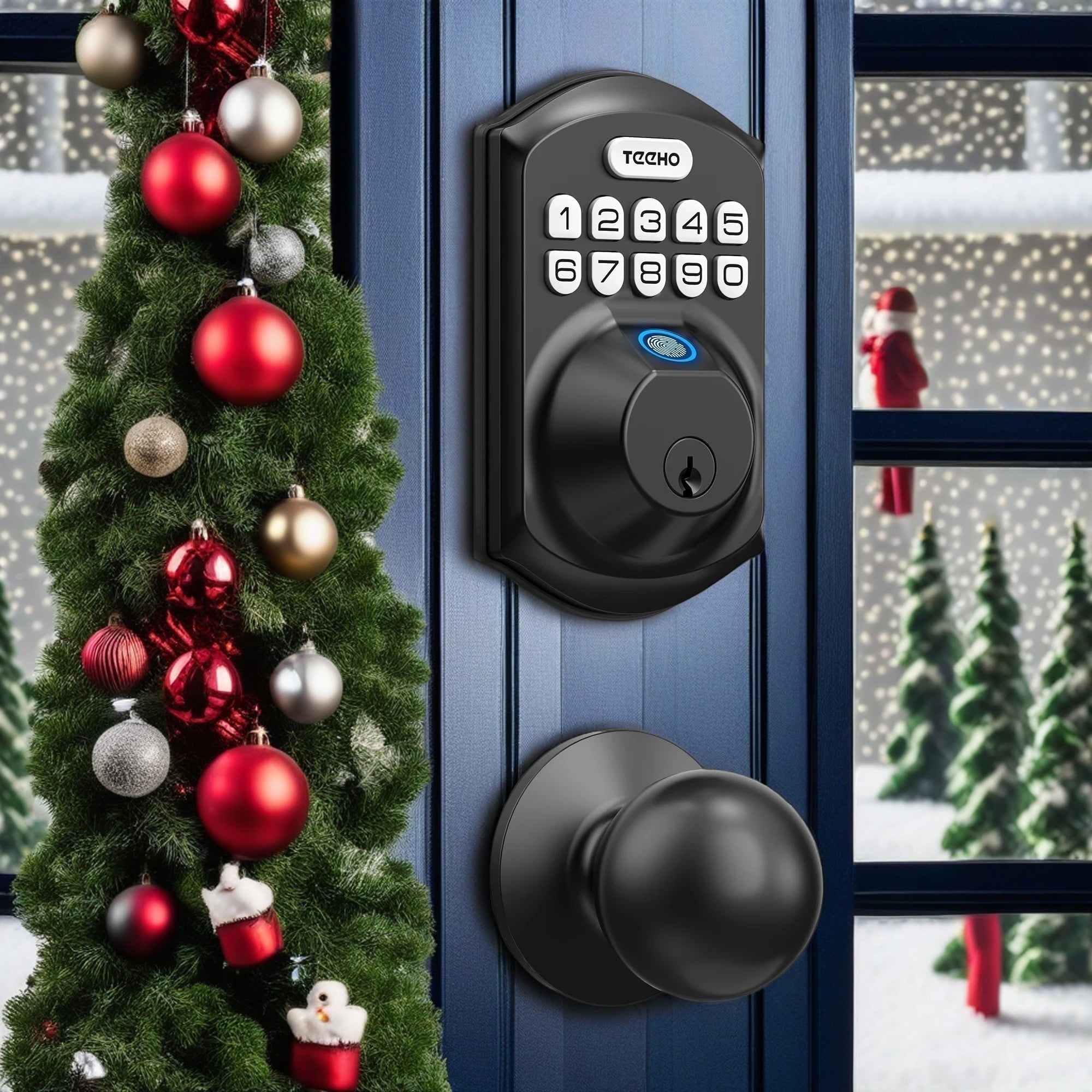 Teeho Fingerprint Keyless Entry Electronic Smart Deadbolt Door Lock, Easy Installation, Matte Black