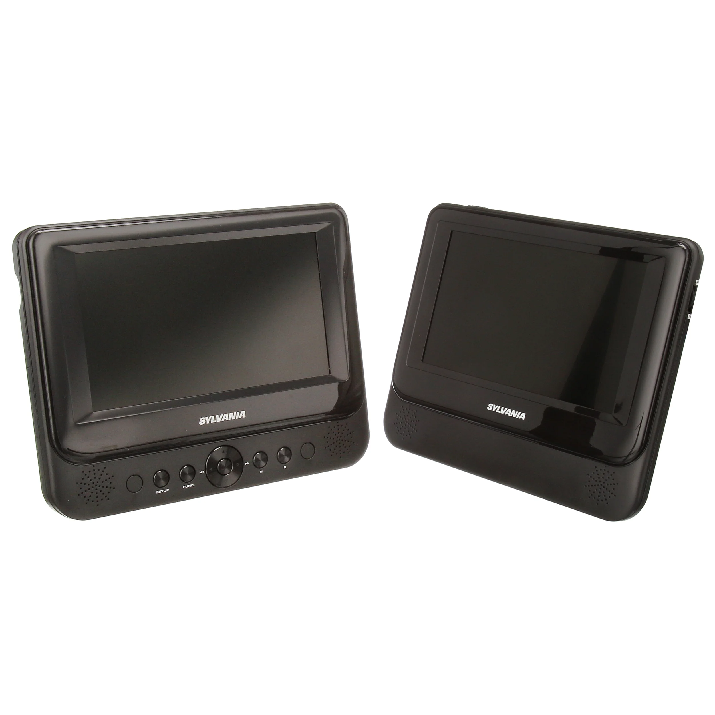 $145.34Add entertainment features to your car’s backseat with this two-pack of Sylvania portable DVD Blu-ray(r) players. Enjoy entertainment on the go with this Sylvania dual screen 10-inch portable Blu-ray(r) player. An adjustable Full HD display ensures image detail and clarity, while the top-panel button control center makes for smooth operation. This Sylvania 2 x 10-inch portable Blu-ray(r) player features built-in stereo speakers for quality audio and a built-in rechargeable battery for convenience. Power these headrest-mountable portable players with your vehicle charger or home outlet.