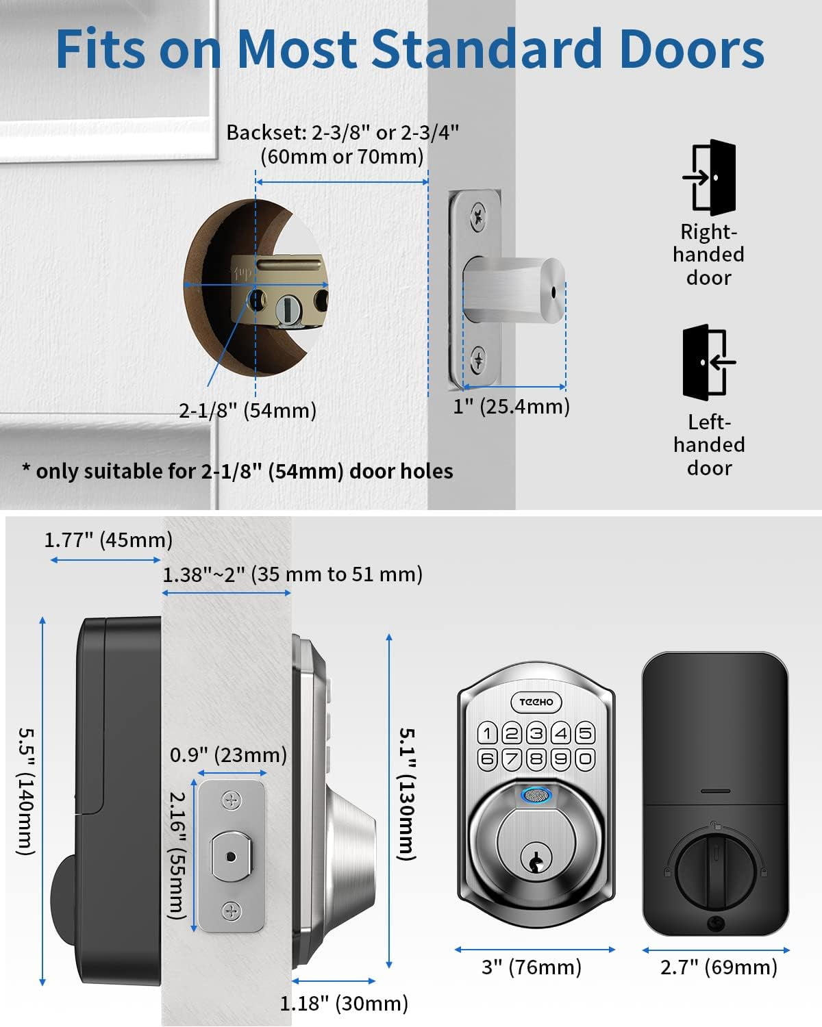Teeho 3D Fingerprint Keyless Entry Door Lock, Security Keypad Deadbolt Electronic Smart Door Locks, Satin Nickel – Size: