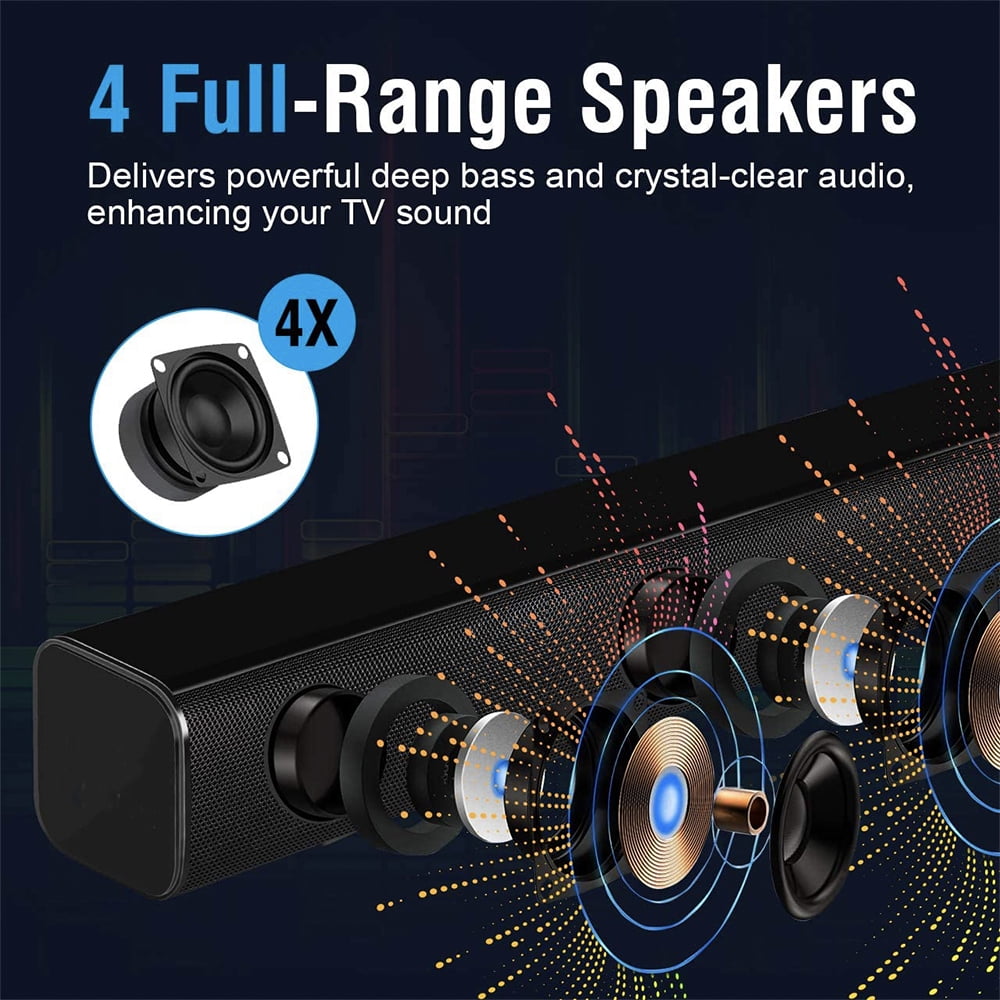 Tyethy Sound Bars for TV, 30″ Wireless Bluetooth 5.0 Sound Bar with Subwoofer 3D Surround Sound Wall Mountable TV Speakers for Home Theater, Black