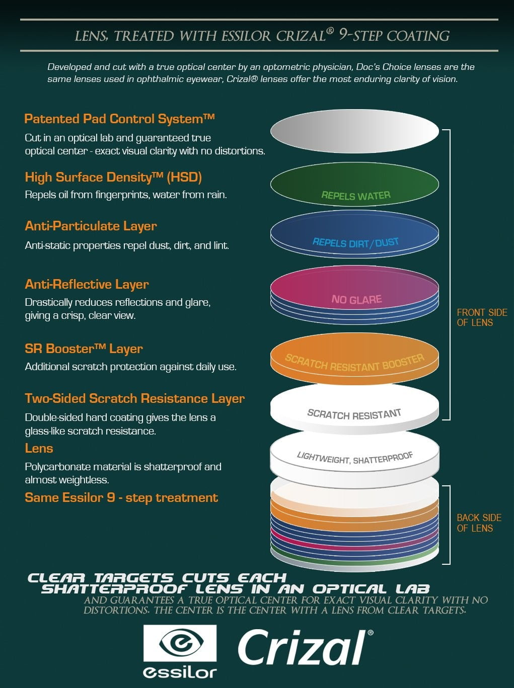 $116.09A superior line of lenses developed by an optometrist for Axcel scopes. The Crizal lens by Essilor with its special lens coating eliminates glare and reflections. Repels water, dirt, smudges, oil and resists scratching. The same quality lenses used by optometrist for eyewear, the Crizal lens offers the most enduring clarity of vision clear targets. Each shatterproof lens is cut in their lab, guaranteeing a true optical center for exact visual clarity.