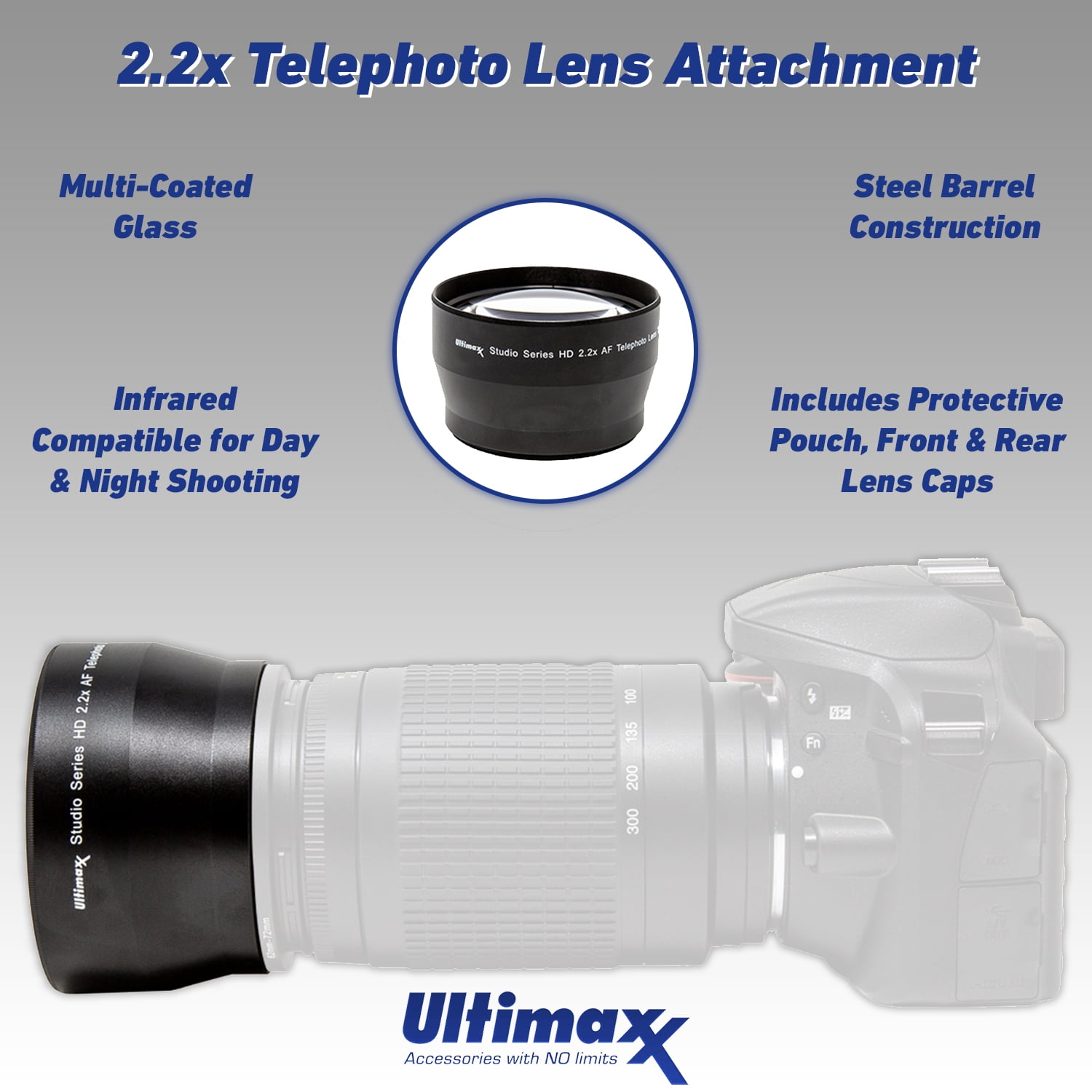 - 2.2X Multi-Coated Telephoto Lens