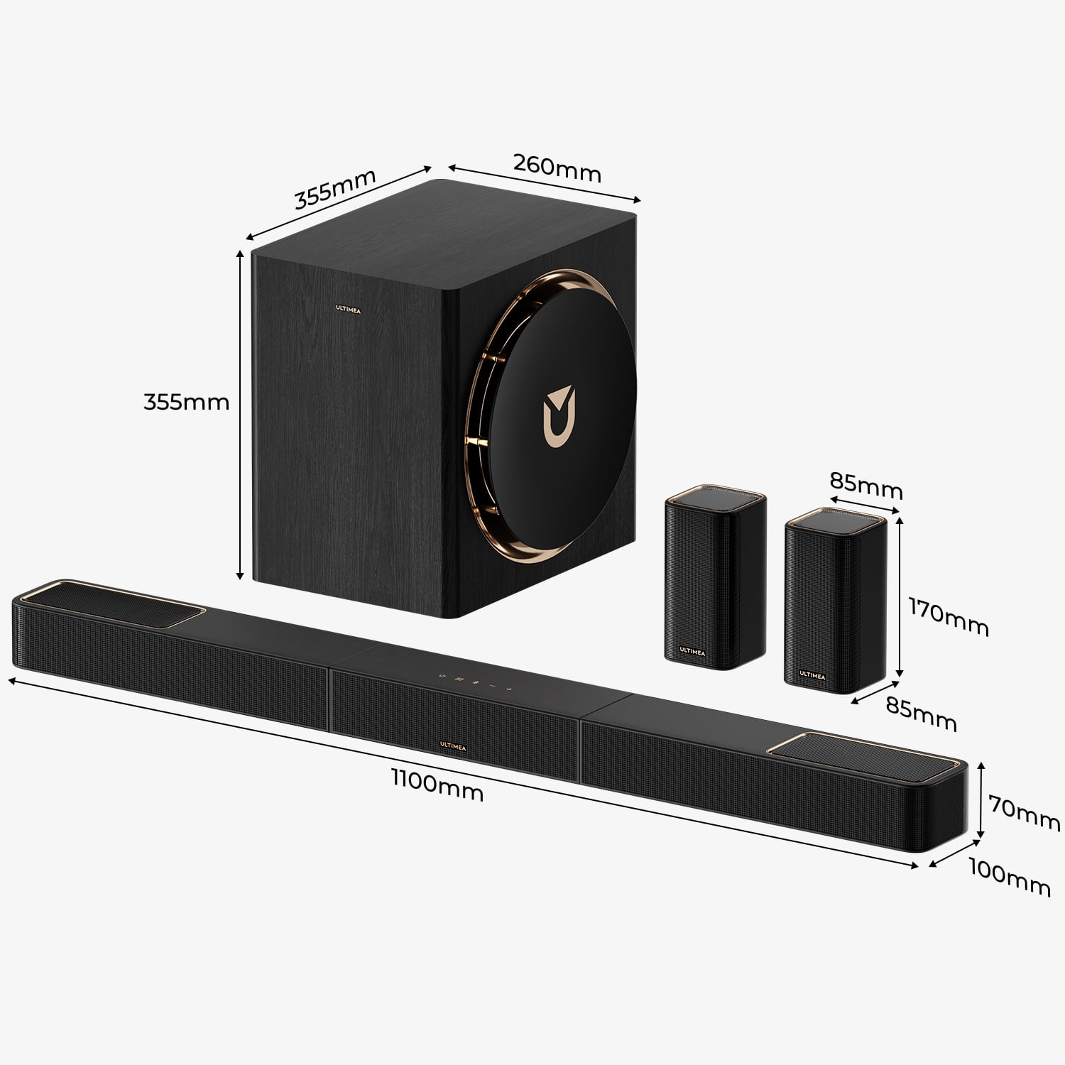 Ultimea Poseidon D50 5.1CH Bluetooth Sound Bar Speaker System with APP Control U2500 (2025 New Version) – Black