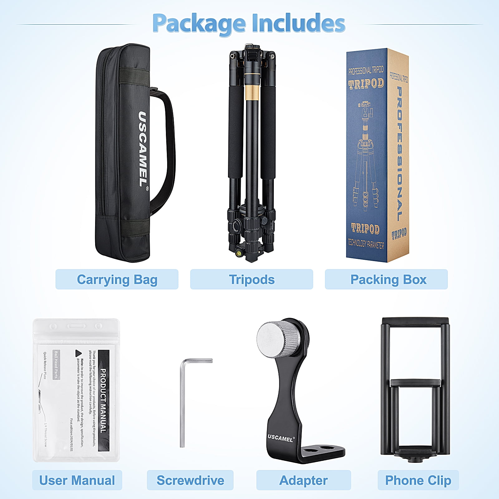 USCAMEL Camera Tripod, Pro Video Tripods for Camera DSLR Adjustable 63″ Monopod, Foldable Outdoor Shooting Tripod Travel Photography 360° Ball Head