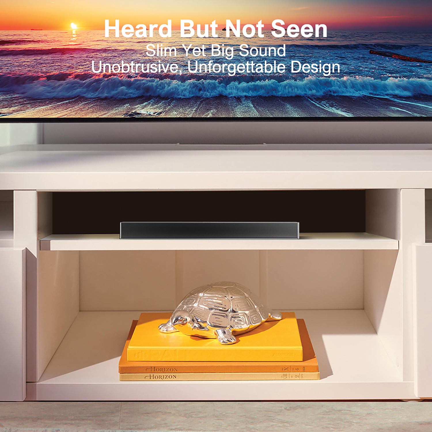 $472.14Original price was: $472.14.$291.54Current price is: $291.54.NOTE: At ULTIMEA, we highly value individual sound preferences and offer a diverse range of personalized EQ programs to cater to your unique requirements. If you find the need, please reach out to us for balanced bass, enhanced bass levels, treble adjustments, improved sound quality, clearer vocals, EQ fine-tuning, volume reduction and more. Experience Sound Transformed: Introducing the ULTIMEA Nova S40 Sound Bar for TV or PC. Unveil a new era of audio innovation with its sleek ultrathin profile, measuring an astonishing 3.8cm in thickness. Elevate every moment with its powerful capabilities, perfectly suited for any scenario. Immerse yourself in heart-pounding bass like never before, thanks to our groundbreaking BassMax technology. From a whisper to a roar, ULTIMEA Nova S40 delivers. Redefining slim while amplifying impact -Discover Ultimate Sound with ULTIMEA HEARD BUT NOT SEEN:Just 1.5-inch tall, this sleek and unobstructive soundbar for tv is easy to hide, until you hear the crisp and clear sound from soundbar. Built-in 2 x 2.25″ racetrack drivers to take up less space yet louder sound. WIRED SUBWOOFER WITH ENHANCED BASS: The 7.2L large-volume subwooferenables the diaphragm’s amplitude to reach 15mm, achieving a more powerful bass. Ultimea exclusive BassMax technology enriches the low frequencies, enabling adjustable bass for a richer, deeper sound experience. PREMIUM GAMING MODE: Sleek and slim pc soundbar perfectly fits the size of your PC, visually and audibly elevating your gaming environment. The enhanced “Game” mode and subwoofer put you in the center of the game, clearly capturing every footstep and breath. CUSTOMIZED 3 EQ MODES: Thoughtfully designed to spark your imagination in every scene. Shocking sound effects in “Movie” mode, delicate sound quality in “Music” mode. Perfect for any space, effortlessly unlock diverse sound experiences. WIDE COMPATIBILITY: The sound bar supports ARC, Optical, AUX, USB and Bluetooth 5.3 connection, it effortlessly integrates with a wide range of devices, is your one-stop audio entertainment system for TVs, computers, phones, projectors, and gaming consoles. What’s more, we provide all the necessary cables for a hassle-free setup.