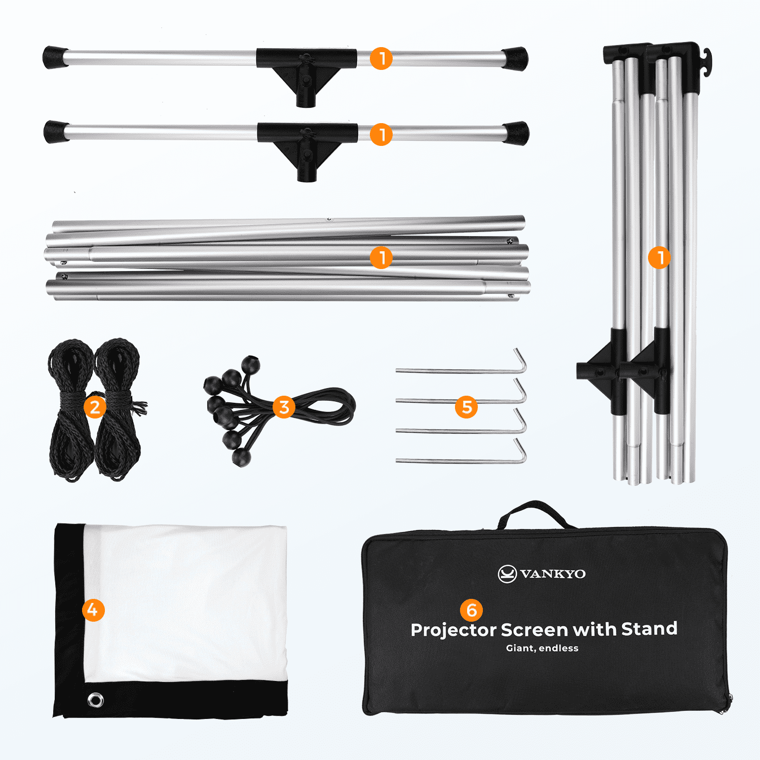 VANKYO Projector Screen with Stand, 100-inch Portable Indoor Outdoor Projector Screen, Wrinkle-Free 16:9 HD 4K Tripod Projector Screen, Adjustable Height, 160° Viewing Angle