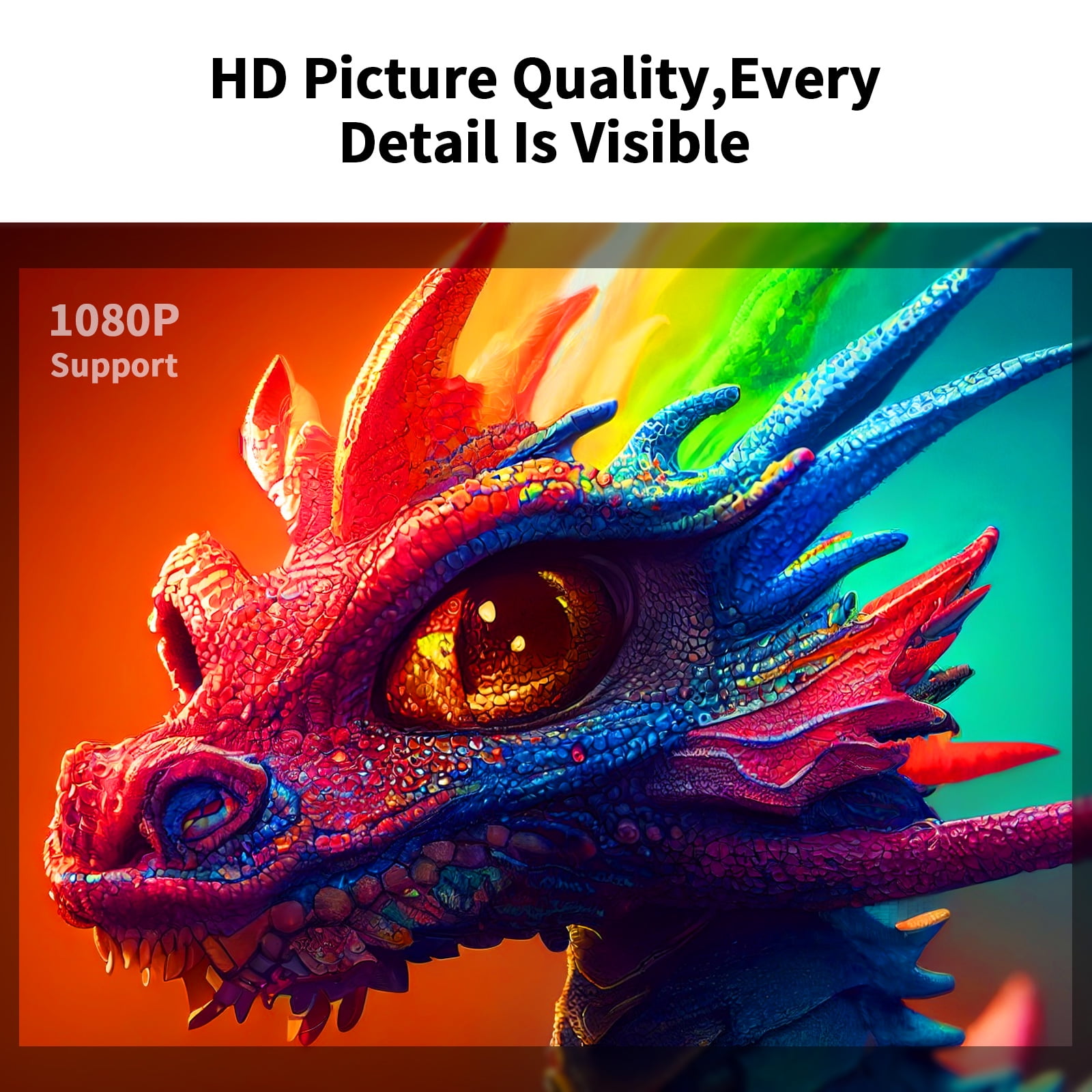 $162.54The VANKYO Performance H300W is equipped with the latest display chip, producing high definition of native 1920*1080 resolution (4K support). The vertical design is convenient for viewing and using anywhere. A 220 ANSI lumen LED display can display images up to 200 inches. Remote focusing is convenient and elegant. Advanced Bidirectional Bluetooth 5.1 technology can be connected to mobile phones, tablets, and other devices, or used as a separate Bluetooth speaker. A wide range of interfaces, including HDMI, USB, AV, etc., and supports 2.4G+5G WiFi. Extremely low Noise Level under 20dB enables a enjoyable movie experience.