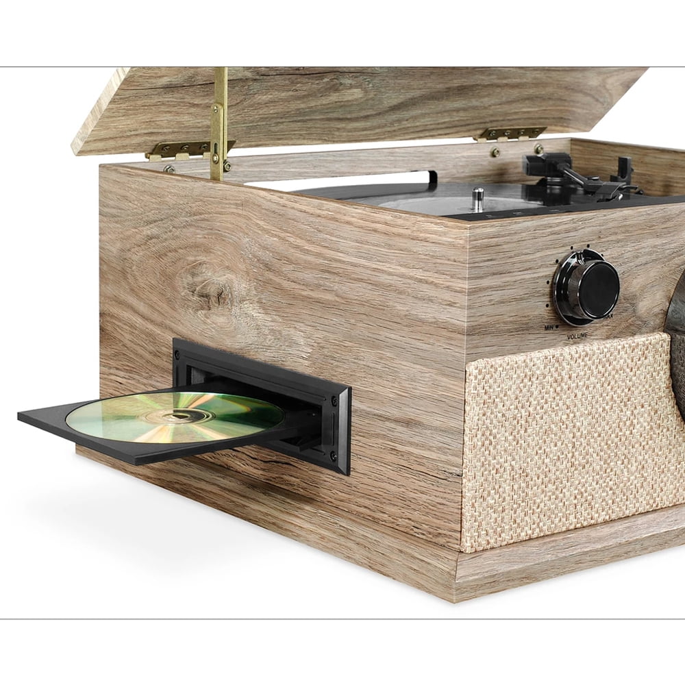 $154.83The Victrola Brookline 6-in-1 Bluetooth Record Player combines a traditional feel with Modern Farmhouse style. Stream your music via Bluetooth, 3-Speed Turntable, analog Radio with “around the dial” LED lighting, CD or Cassette Player, or through the 3.5mm Auxiliary Input. Enjoy the Built-in Speakers or RCA Line-Out for external speaker connection!