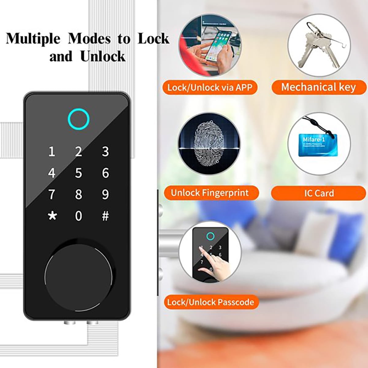 $60.19Original price was: $60.19.$42.99Current price is: $42.99.The smart fingerprint key-less door lock will make a great guard to you and your family. This smart lock has multiple ways of unlocking with Smartphone, Keypad, Passcode and Mechanical Key. It is simple to install only a screwdriver is all that is required Plus, it is set out to provide extra home security with auto lock (5-120s, Customize) to keep your house safer. After somebody enter incorrect pass code exceed 5 times, this smart lock will be automatically locked for 5 minutes. Besides the anti-peep function will prevent outsiders from knowing your specific password.