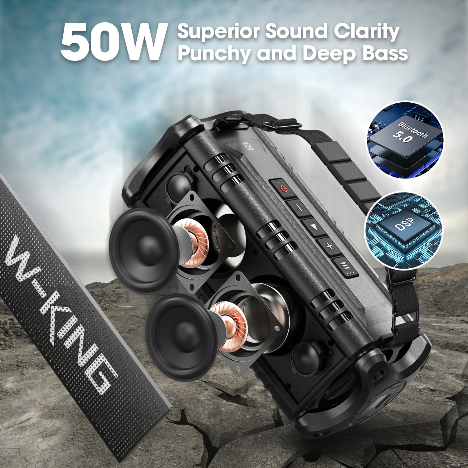 W-King 50W Bluetooth Speakers, IPX6 Waterproof, Deep Bass, 30H, TWS, Black