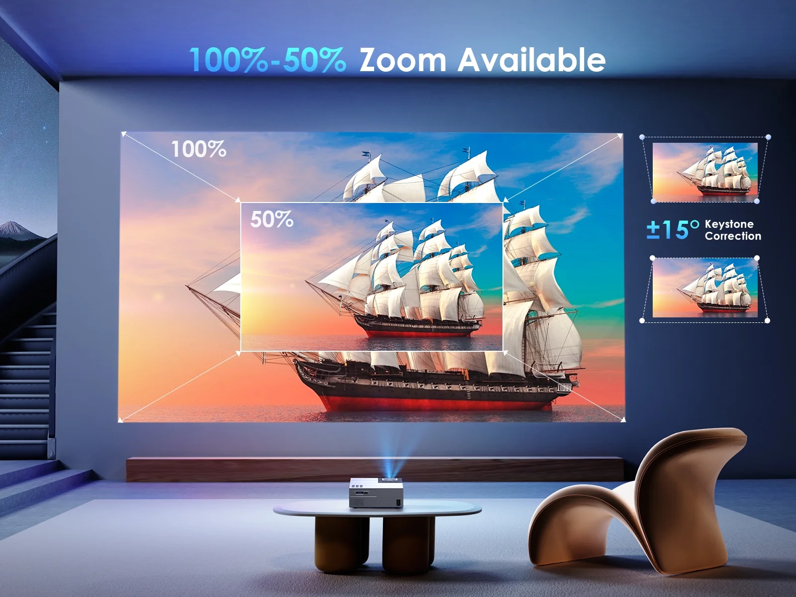WiFi & Bluetooth 4K Projector, Full HD Native Movie Projector, Zoom Function & Keystone