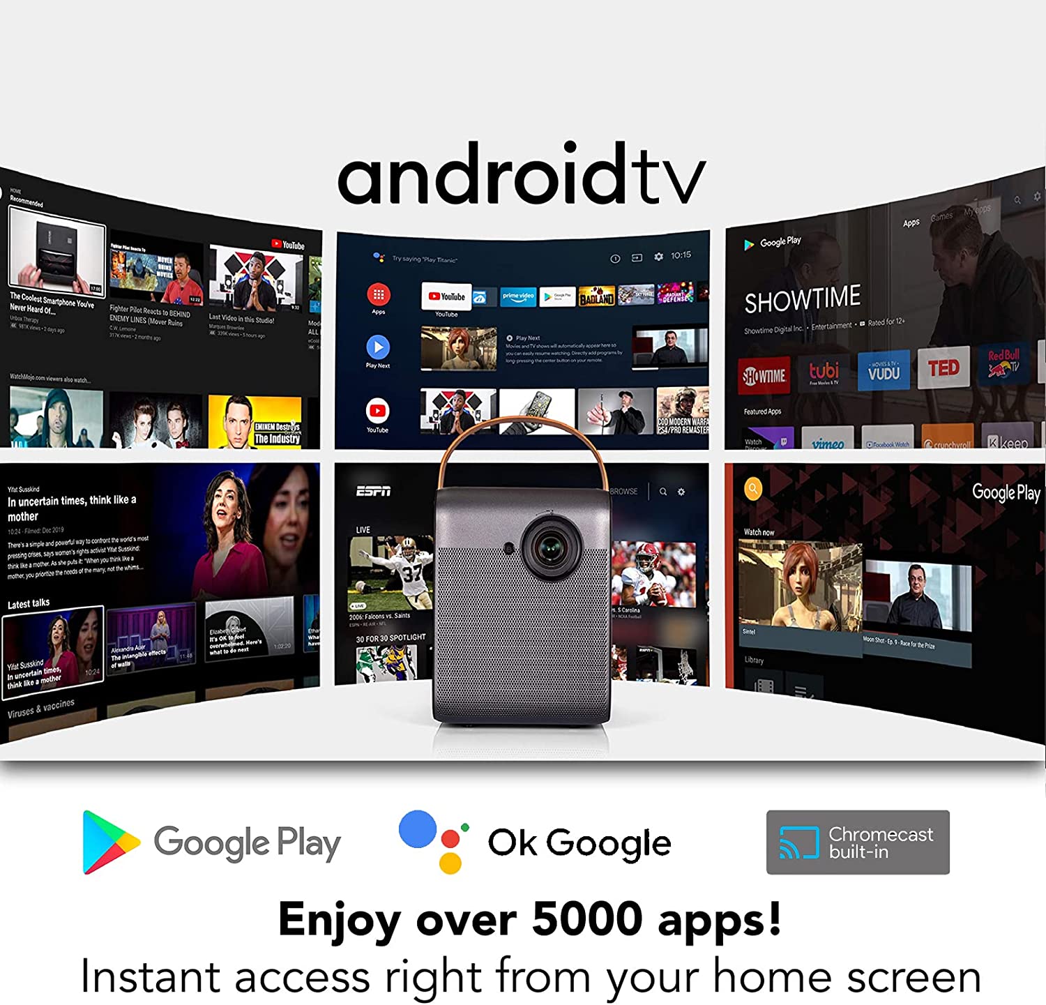 WEMAX Dice Outdoor Portable Projector, Android TV Movie Projector, 3 Hours Battery, 700 ANSI Lumens, Mobile Theater, WiFi Bluetooth HDMI USB, Dolby Audio DTS-HD, Auto Focus, Auto Keystone