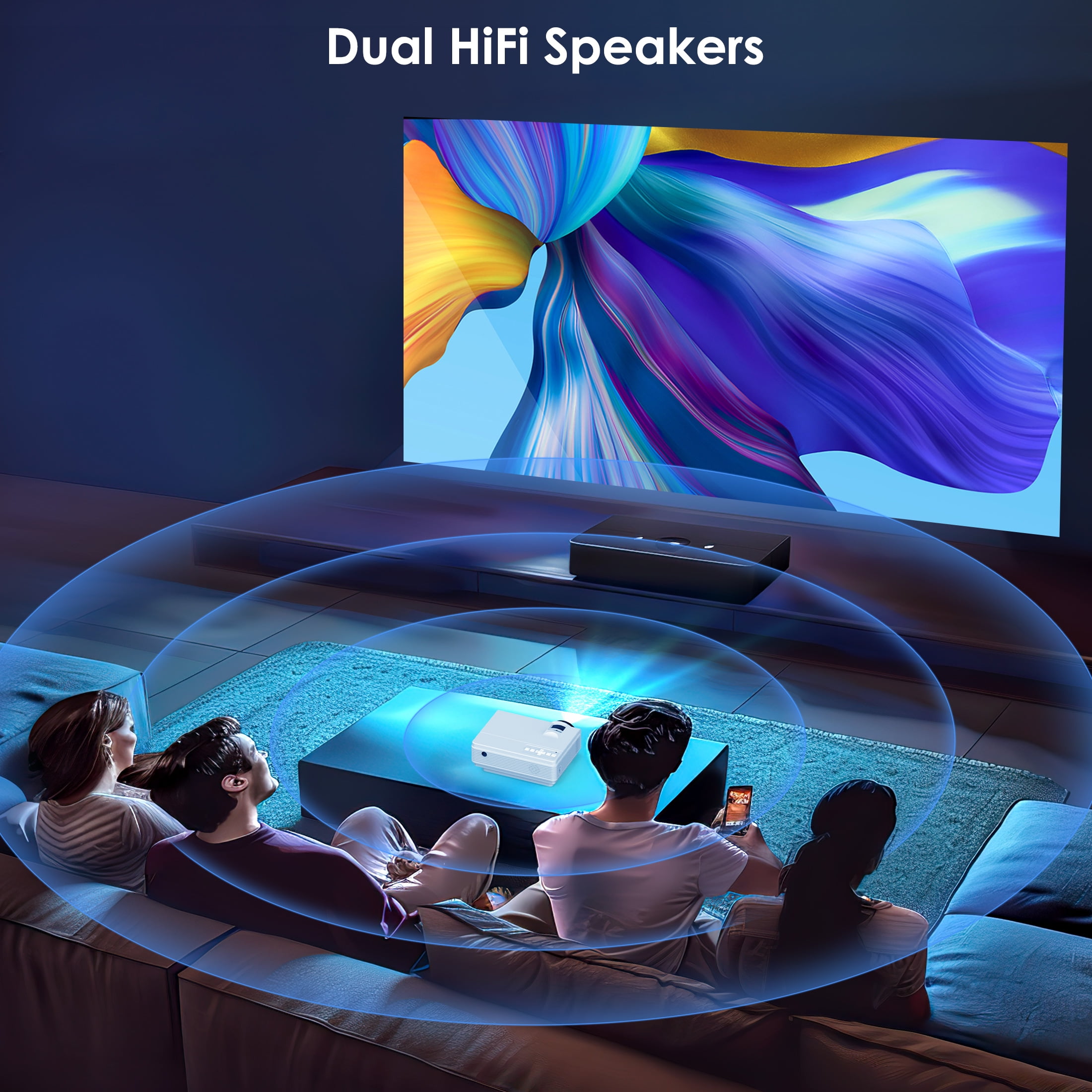 $108.33This is a 4K projector that combines WiFi 6 and Bluetooth 5.3. Achieve high-speed, stable data transmission and wireless device connection. The native full HD 1920x1080P resolution ensures delicate picture quality, and up to 22,000 lumens brightness enables excellent presentation in different environments. It can project a stunning 450-inch giant screen and has a 50%-100% flexible zoom function to adapt to diverse space needs. Built-in subwoofer speakers provide an immersive stereo experience. Equipped with a complete HDMI/USB/VGA/AV/audio interface, it is easily compatible with iOS, and Android mobile phones, TV sticks, USB flash drives, PCs, laptops, MacBooks, DVD players, PS5, various game consoles, and other devices, as well as external speaker. Create comprehensive, convenient, and efficient audio-visual entertainment solutions.