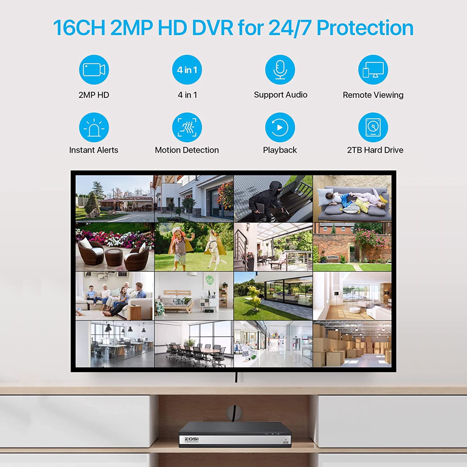 ZOSI 16CH 3K Lite CCTV DVR Video Recorder with 2TB Hard Drive. Hybrid Surveillance 4-in-1 DVR Supports HD-TVI, CVI CVBS AHD 960H Security Cameras, Remote Viewing, Motion Detection,24/7 Record