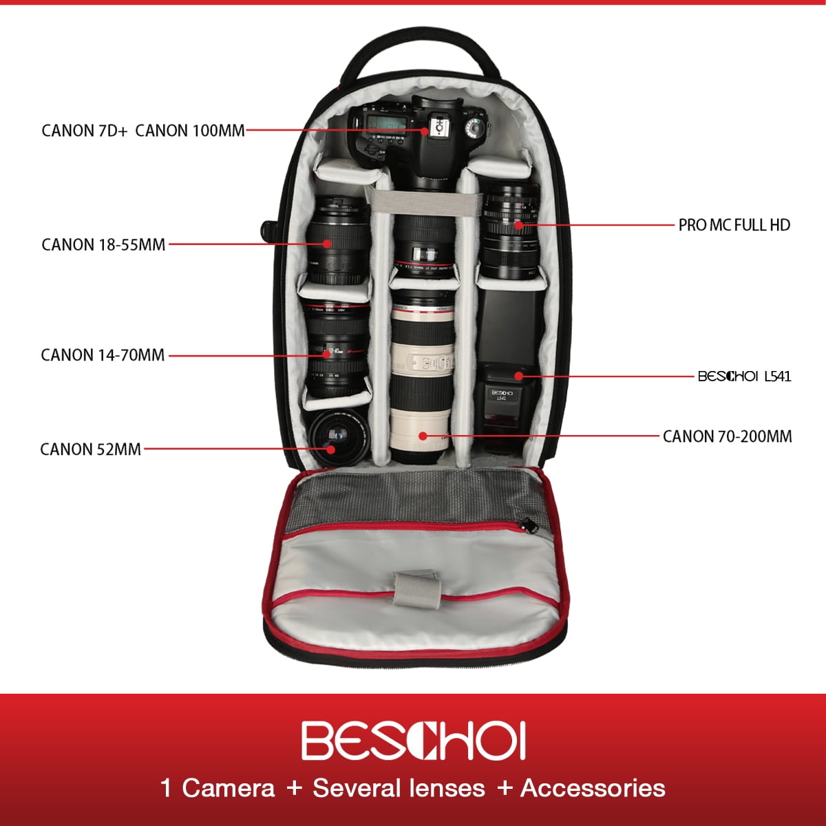 $55.89Large capacity It is able to contain 1-2 cameras, in addition to various personal effects, a 13.3 tablet, and various photographic materials such as a Reflex with mounted lens, five / six additional lenses, a drone, and any accessories such as battery charger, cables, memory cards. Interchangeable and flexible dividers are easy and practical to use, the dividers allow you to perfectly customize the inside of the bag according to your outfit. Perfect for a camera and more lenses, almost compatible with all professional DSLRs. Caution: The length of the telephoto lens should not exceed 32 cm.