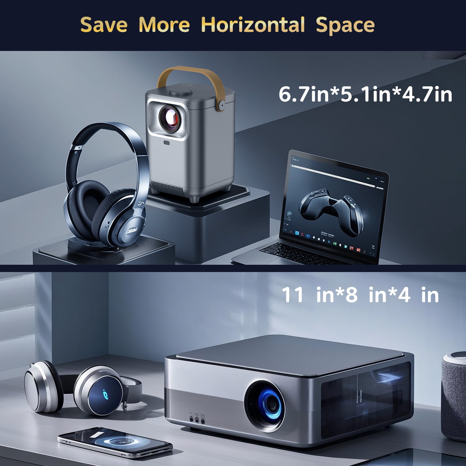[Electric Focus] Mini Projector with WiFi & Bluetooth , 210°Rotation & Portable Home Projector
