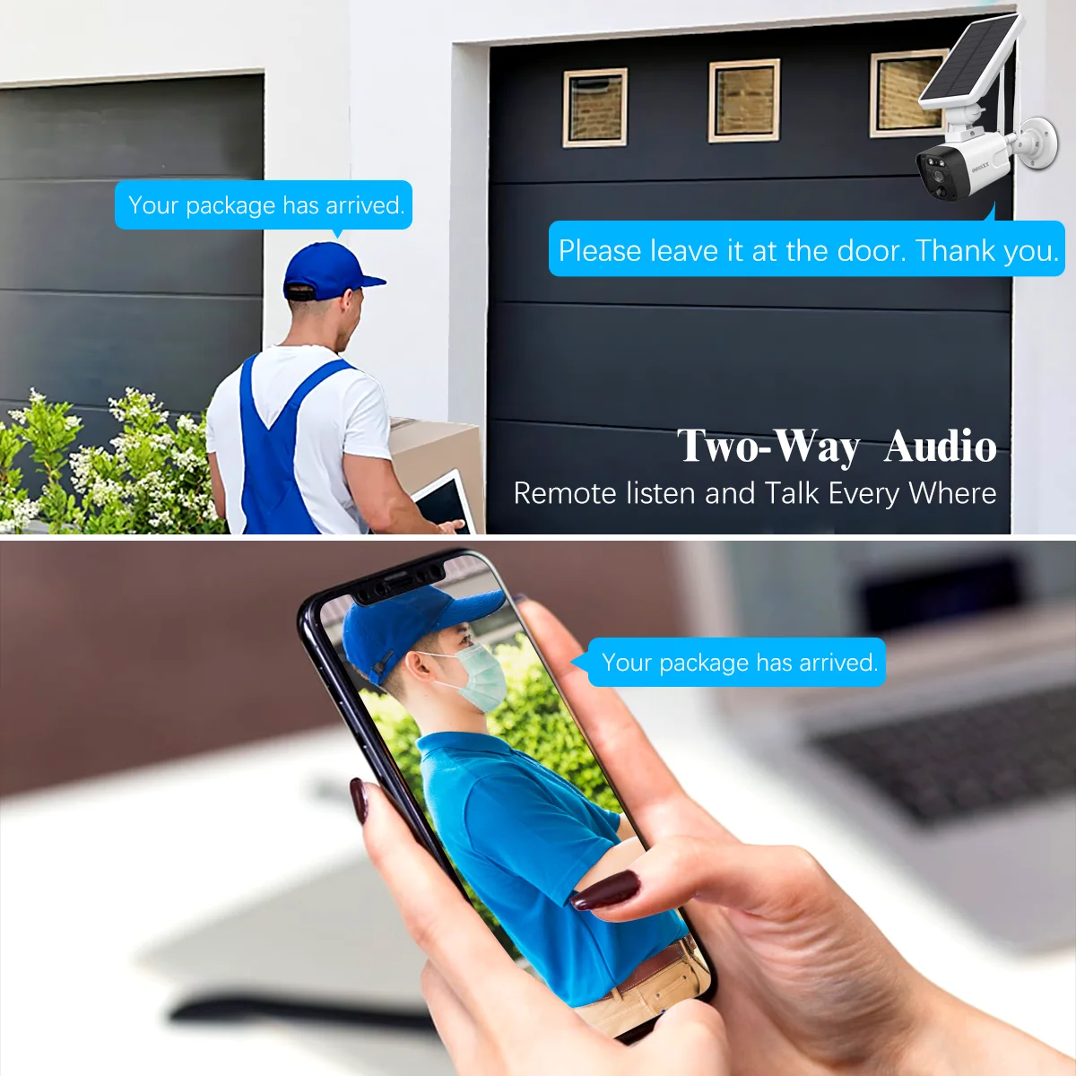{4.0Megapixel & 100% Wire Free} 2-Way Audio Solar Security Camera Outdoor Wireless Solar Powered Wireless Camera with Rechargeable Battery, WiFi Home Surveillance Camera