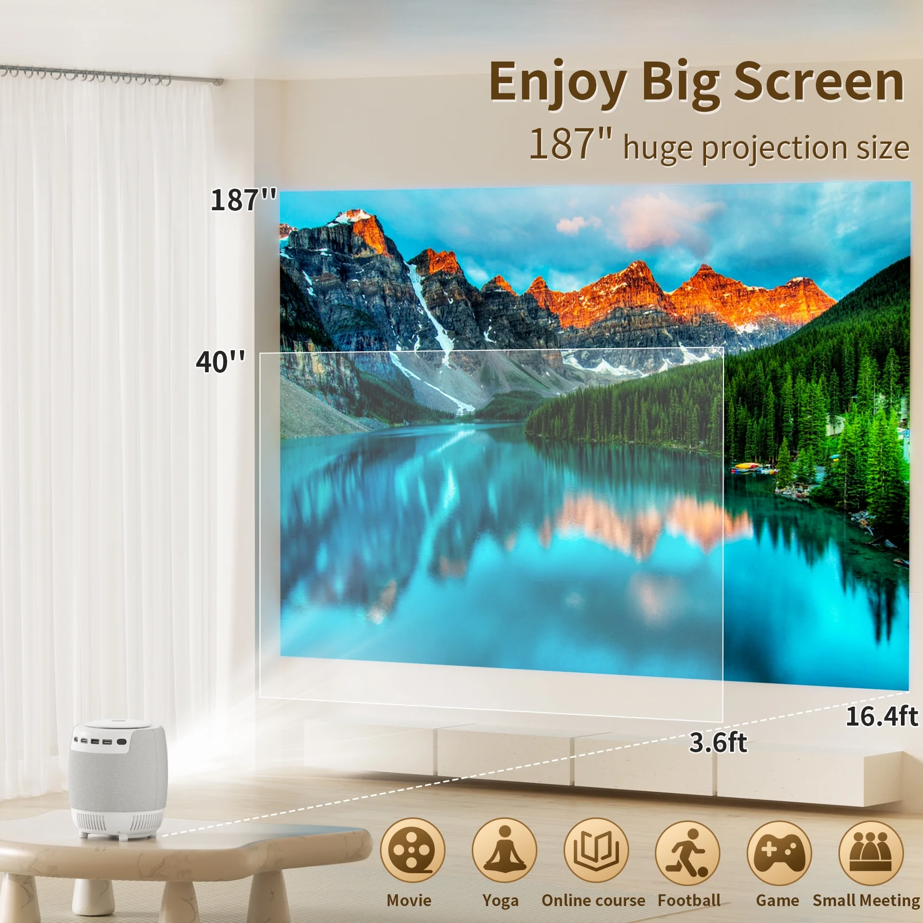 [Electric-Focus] Losei H9 Projector 4K Support with WiFi 6 and Bluetooth,187”Display Compatible with TV Stick/Smartphone/HDMI/USB, Indoor & Outdoor Use