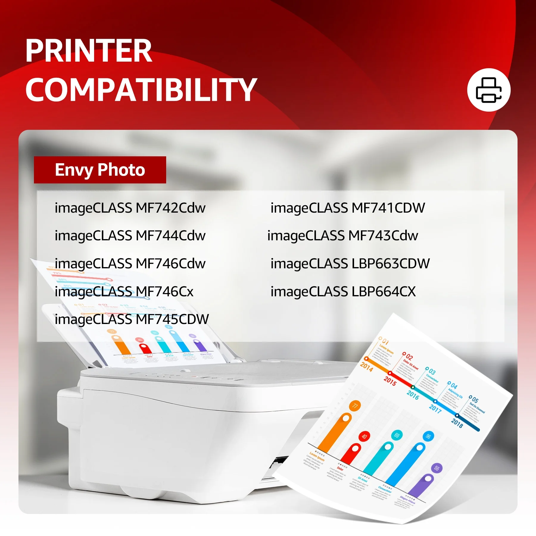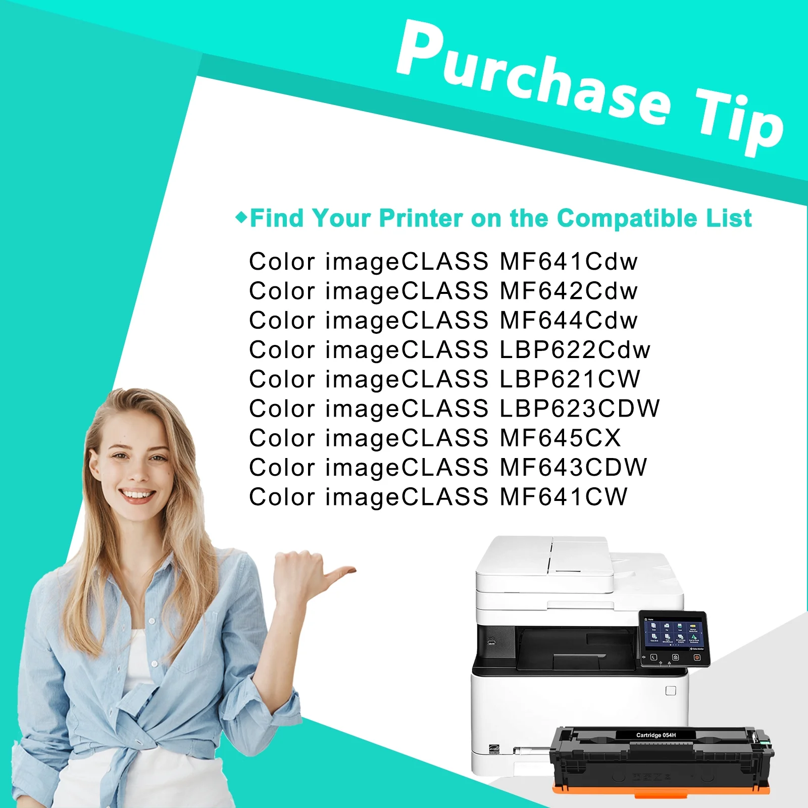 $45.57Product Specification: ⭐Inlcude: 5 pack 054H 054 toner cartridge Printer Ink high yield compatible for Canon 054H 054 CRG-054H toner cartridge With Chip (2*Black Cyan Magenta Yellow ) ⭐High Page Yield: 3,100 Pages for 054H Black Toner Cartridges , 2,300 Pages for 054H Color Toner Cartridges (Letter/A4 at 5% Coverage) ⭐Compatible for Printer: Canon Color ImageCLASS MF644Cdw MF641Cdw MF642Cdw MF640C MF641Cw MF643Cdw MF645Cx Printer Canon Color ImageCLASS LBP620 LBP621Cw LBP622Cdw LBP623Cdw Printer ⭐Color: 2-pack cartridge 054H black toner; 1-pack cartridge 054H cyan toner; 1-pack cartridge 054H magenta toner; 1-pack cartridge 054H yellow toner ⭐Cartridge Approx. Weight : 6.37 Pounds Cartridge Dimensions (Per Pack): 12.6 x 3.54 x 3.94 Inches Why MICOTONER? ⭐True Image has strict material inspection team and quality management team. Our products are under ISO9001, ISO14001, STMC, CE, RoHS certification and we guarantee that our products are premium, environmental-friendly, safe and harmless to human body ⭐All toner cartridges use Smart Chips which engineered to deliver the precise amount of toner on every page, reducing waste and maximizing printing volume. ⭐All toner cartridges are tested in multiple processes before leaving the factory to ensure high performance.