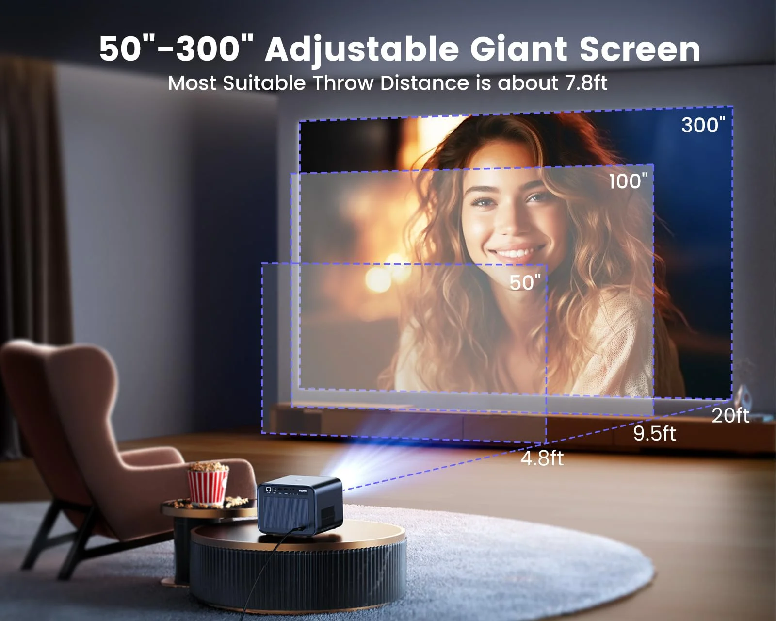 [Electric Focus] GCZ 5G WiFi Projector with Bluetooth, 400ANSI Supported 4K Full HD Projector, Up to 300″ Screen Supported