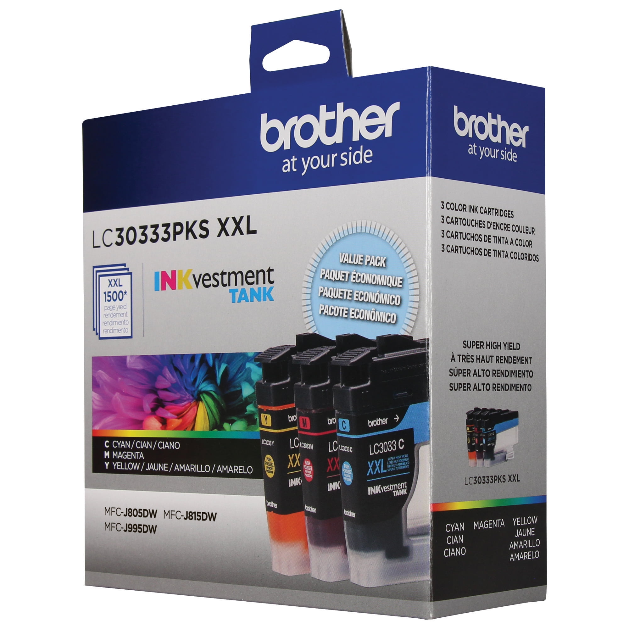 $59.76Original price was: $59.76.$42.99Current price is: $42.99.Brother Genuine LC30333PKS 3-Pack Super High-yield Color INKvestment Tank Cartridges deliver consistent, professional print quality and ultra convenience with an up to 1,500-page/cartridge yield.* Includes one each of Cyan, Magenta and Yellow cartridges. Brother Genuine ink is intelligently engineered to work seamlessly with your Brother INKvestment Tank inkjet printer to consistently produce sharp prints that withstand the test of time. Brother Genuine LC30333PKS is for use with Brother INKvestment Tank, affordable inkjet all-in-one printers MFC-J995DW and MFC-J995DW XL featuring Brother tank technology. Brother offers environmentally responsible disposal for Brother Genuine cartridges at end of life. Visit for more information.