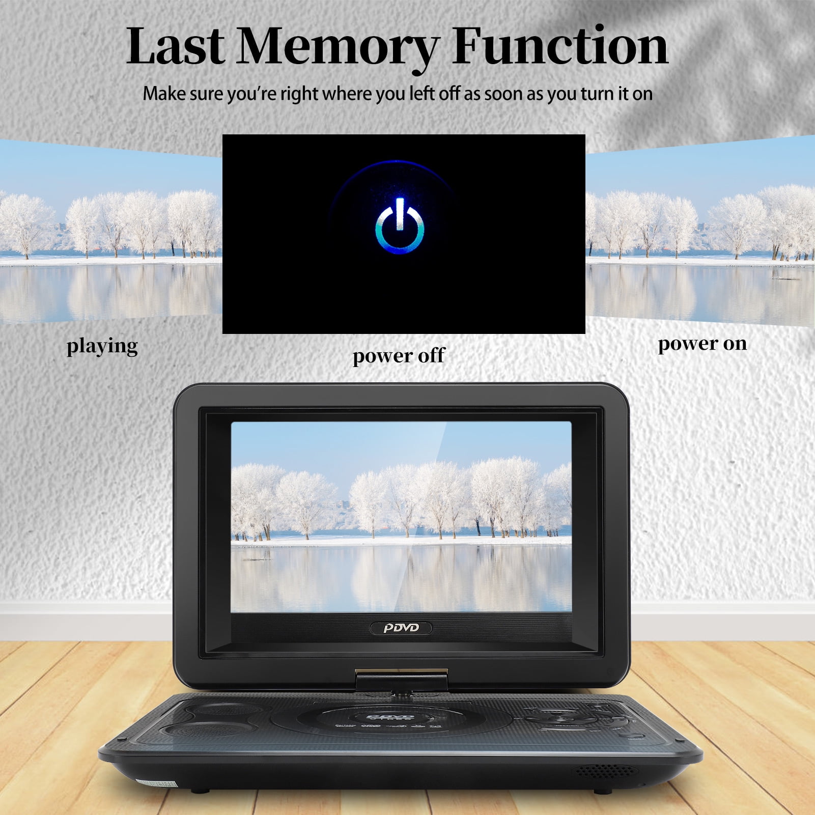 $105.77🎈Swiveling Screen 10.1 inch screen with unique design. 800*480 Swivel Screen obtains a 270 degrees rotation and 180 degrees flip feature. Portable DVD Player can be swiveled as a tablet easily while you are on the road trips with your family. ⭐High Capacity Built-In Battery Watch all your favorite TV shows and movies or let your kids be engaged by watching beloved cartoons while you’re on the road. A built-in 1500 mAh rechargeable lithium battery ensures 3 – 5 hours of video playback. Our 13.9″ Portable DVD Player equipped with three power supplies – built-in battery, car charger, and AC power adapter, hence it serves for a long period of time before having to recharge. 🎨Multimedia Supported Direct play in formats: CD,DVD,CD-R/RW,DVD-R/+R,DVD+RW/-RW, VCD,SVCD(but not blu-ray DVD); Up to 32GB USB and SD Card are supported; MP3/WMA/WAV, JPEG, MPEG2/AVI/DIVX are supported. The disc is not restricted by region codes. 🎵Dual Speaker& Louder Volume Dual speaker design. Portable CD Player is integrated with two powerful stereo speakers, which makes the volume louder and clearer. Also the DVD player is with a 3.5mm earphone jack on the right side, so that you can get a concentrated and clear sound. 📢Last Memory & Remote Control One more feature you need most is here. CD Player runs on a universal operating system via remote control. Break-point memory function makes your portable DVD player able to pick you up from where you left last time. Satisfied service: we provide 24/7 after-sales service to ensure you got a 100% satisfied buying experience. ✨Support game function. Equipped with game handle and CD. ✨TV function: With cable TV signal interface, hundreds of channels can be preset. Can easily receive cable TV channels (only support analog TV, do not support digital TV). ✨AV output function: The product can be connected to the TV and high-level sound so that you can enjoy wonderful movies. ✨AV input function: Can be connected to an external video, such as camera or ordinary DVD. ✨USB interface: Can be plugged into hard disk drive or U disk. ✨Built-in card reader: Can directly read the movies / pictures / musics from your Storage / MMC card and USB disk. ✨Built-in stereo speakers, support headphone output. ✨Super electronic seismic circuit. (DVD3 seconds, CD / VCD10 seconds, MP3 90 seconds). ✨Built-in 3D audio processing. Support FM radio function. ✨Supports language settings of disc menu playback (English, French, Spanish, Chinese, Japanese, Korean, Russian, Thai) ✨Intelligent power off memory function. Package List: 1 x DVD Player 1 x Power Adapter 1 x Remote Control 1 x AV Cable 1 x CD 1 x Game Handle 1 x User Manual 1 x Car Charger