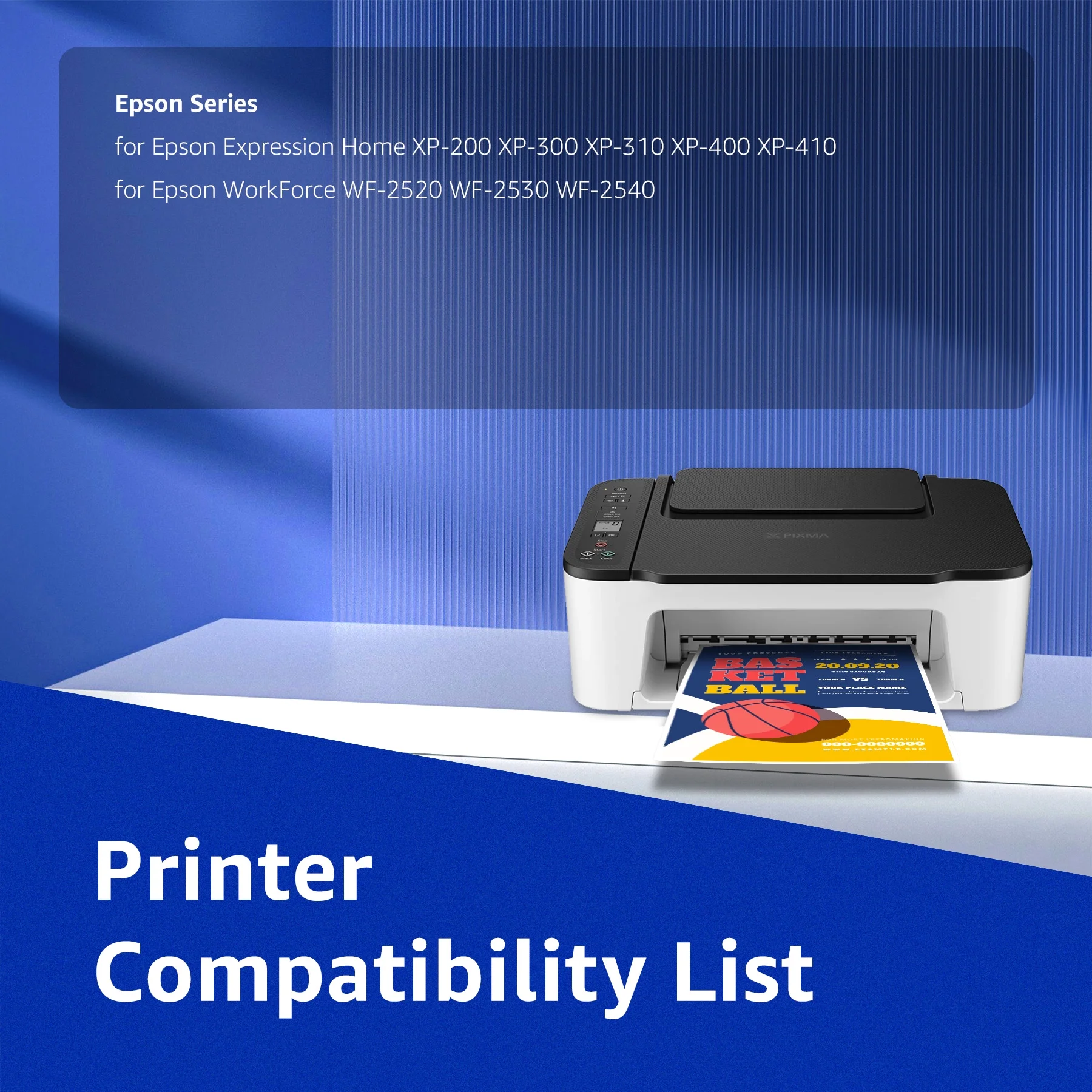 $30.95Package included: 200XL Ink Cartridges with 2 Black, 2 Cyan, 2 Magenta, 2 Yellow total 8 packs. Compatible printers: For Epson Expression Home XP-200, XP-300, XP-310, XP-400, XP-410, Epson Workforce WF-2520, WF-2530, WF-2540, WF-2010F, WF-2010W, WF-2510WF, WF-2520NF, WF-2530WF, WF-2540. Page yield: up to 500 pages for 200XL black, up to 450 pages for 200XL color at 5% coverage of A4 Paper. High yield 200XL ink cartridges (not OEM) replacement for Epson 200 ink cartridges, highly recommend for customers who are tired of expensive and low page yiled original ink cartridge. Save Money: less than half of the original price High Yield: XL twice more pages than OEM 100% Compatibility: provide as the same crisp text and graphics as epson original Use with Confidence: free replacement within 24 months,if inadequate quality occurs Why us: we has been improving recycled technology since the day it was found. Made in qualified factory with the certifications like ISO9001, ISO14001, we do not simply refill the ink into the cartridge, but professionally clean, rebuild the shell and refill with refined ink. Each cartridge was fully ested during the strict QC process as well.