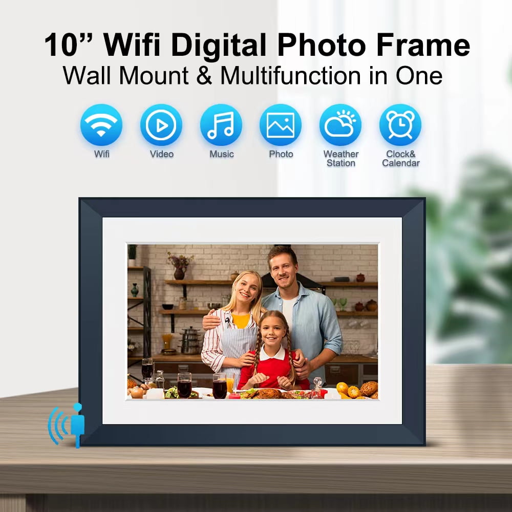 $72.22Original price was: $72.22.$38.69Current price is: $38.69.The Dammyty 10″ Wifi digital photo frame is like an electronic Postcard. It allows you to capture the cities you have visited and the scenery you have seen into photos, so you can share them with your family and loved ones. This makes the photos more meaningful and filled with love and stories. —-Why did you choose our wifi digital photo frame? ✨1.WIFI CONNECTION, SHARE PHOTOS, AND VIDEOS INSTANTLY FROM YOUR SMARTPHONE FROM ANYWHERE: Send one or multiple photos or videos ( up to 15 seconds ) directly from your smartphone to the digital frame from anywhere in the world through free smartphone app. ✨2. EASY SETUP & USE: Just download the free frame app, set up the frame on WiFi, and invite family and friends to share photos and small videos (max. 15 seconds). It is a perfect gift for the elderly who are not good at using smartphones to stay connected with the younger generation. ✨3.HIGH-DEFINITION TOUCH SCREEN: A digital photo frame equipped with 10.1″ IPS HD touch screen with 1280*800 resolution ensure our smart digital picture frame of a stunning, clear image in any light, provides you an extraordinary visual experience with Multifunctional customized settings to meet your kind of needs, such as slideshow, timer, zoom & crop, sleep mode, etc. ✨4. STORE 40000+ PHOTOS: This picture frame’s built-in 16GB memory (around 50,000+ photos) empowers a huge capability of storage. cloud storage is located on secure and encrypted servers to assure that your photostream is secure and private. ✨5.Auto Rotate & Simple Design: With the auto-rotate function, the digital frame can automatically rotate photos to adjust the direction to fit the frame perfectly, It’s not only a photo frame but a work of art, blends with any home decor, it is a good decoration in your bedroom or living room, even in the office,making good memories surging again and vividly in front of your eyes anytime anywhere, bring memories into your life ✨6. Multi-User Connection. Anyone invited can share pictures/videos to the frame. You can easily maintain your intimate network in this photo frame by adding new users, deleting users, and managing user permissions. ✨7. Customized Setting. You can personalize the digital photo frame with your own preferred settings, such as Auto On/Off, Auto-rotate, Brightness, Fullscreen, Slideshow mode, auto-play, video volume, etc. ✨8.Ideal Gift: User-friendly design makes it easy to use for all ages. Perfect as a gift for different scenarios, birthdays, weddings, graduation ceremonies, family gathering Halloween, Christmas, and so on. All your precious and cherished moments can be displayed on the digital photo frame instead of just being locked inside your phone. ➤Wifi digital photo frame Specifications: Size: 32.6*24.5*8cm color: Black Screen size: 10.1 inch resolution: 1280 More Function: Calender, real-time clock, alarm, set time on/off power adapter: output 12v 1000mA Input Voltage Support 110V-240V ➤File Format: Picture Format: JPEG, BMP, PNG, GIF Music Format: MP3, WMA, OGG, APE, AAC, WAV, FLAC Video Format: RM, RMVB, AVI, MP4, MOV, FLV, WMV, MPEG, TS etc, Support 1080P, 720p video ➤Parts: 1*wifi digital frame 1*Power supply 1*operation instructions