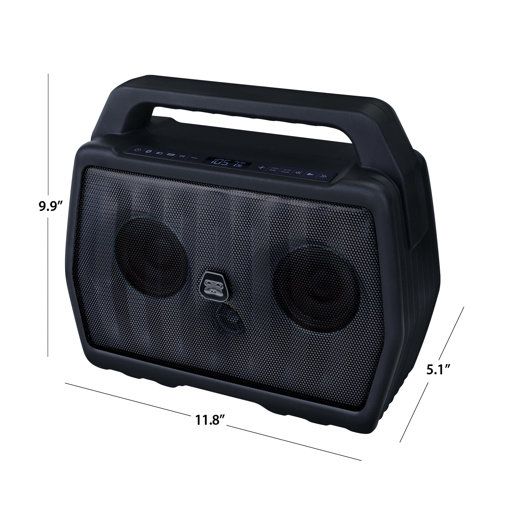 $59.27MEET G-BOOM4 The original Bluetooth boombox just got better. Meet G-BOOM4 featuring Light Flow color changing light panel that moves to the music. G-BOOM4 is the ultimate Bluetooth speaker that pumps out big sound in a rugged, water-resistant, portable package. Sturdy enough to take on any adventure and loud enough for your neighbors to hear — whether they like it or not. G-BOOM4 FEATURES Powerful Sound, Bass that Carries: Delivered through a 2.1 speaker configuration, dual-rear bass radiators and built-in EQ with three optimized presets Light Flow: Full color front light panel with moving lights and color changing patterns that move to the beat of the music Built Tough: IPX4 Rainproof Water Resistance. Built with a rugged housing structure, protective base, and reinforced handle that’s engineered tough. Wireless Streaming: A simple one-button wireless pairing to connect to your mobile devices, smartphone, tablet or computer with Bluetooth Rechargeable Battery: Built with rechargeable battery with 12 hours playback with Bluetooth audio for on-the-go adventure and 9 hours playback with with the light show to party all night. CUSTOMER SERVICE We stand behind our products and want all of our customers to enjoy their G-Project speaker on every adventure you go on. If you have any questions, our US-based support team is here to help via email and phone. Wireless Bluetooth Boombox Speaker, Rugged Portable with Rechargeable Battery LIGHT FLOW Color changing light panel that moves to the music BUILT TOUGH IPX4 RAINPROOF with ruggedized housing construction, port covers and integrated handle for easy carrying RECHARGEABLE BATTERY for up to 12 hours of on-the-go playtime / 9 hours with Light Show on FM DIGITAL RADIO to simply tune in and enjoy music, news, and sports anytime CONNECT QUICKLY AND EASILY IN SECONDS to Bluetooth devices including: iPhone, iPad, Android phones, Samsung and Tablets; Play audio from laptops, PC’s and non-Bluetooth devices using the 3.5mm / AUX-IN jack ON BOARD CONTROLS allow you to play and skip tracks wirelessly with buttons right on the speaker PAIR TWO G-BOOM4’s together and stream for double the power