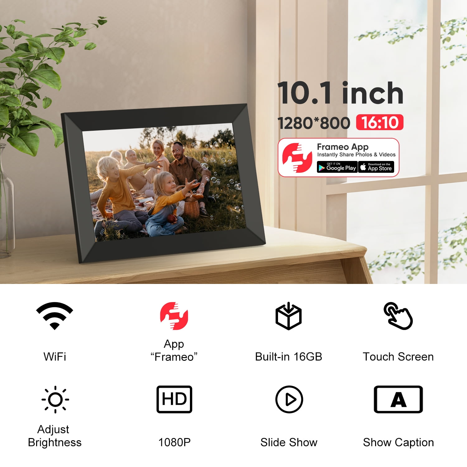 GCZ 10.1” WiFi Digital Picture Frame, 1280*800 HD Touch Screen, Smart Photo Frame with Built-in 16GB, Auto-Rotate, Share Photos/Videos via FRAMEO App