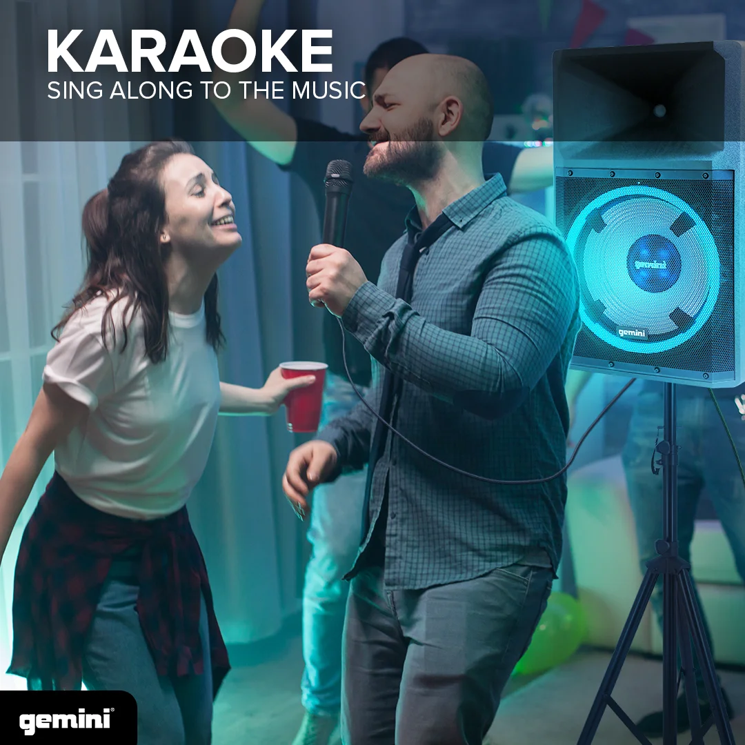 Gemini Sound GSP-L2200PK 2200W Bluetooth PA Speaker System, 15″ Woofer, TWS, LED Party Lights, Mic+Stand, DJ/Events Ready