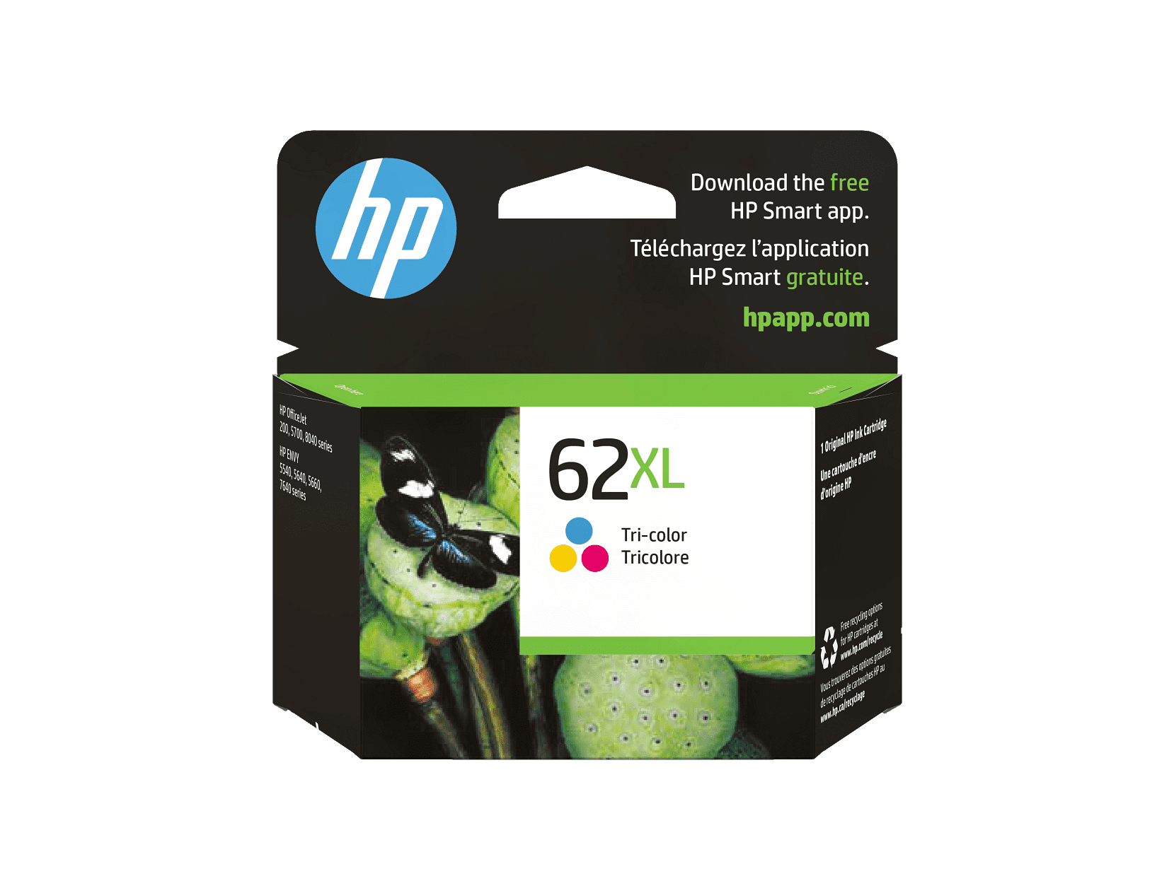$55.83Overview More than 50% of Original HP Ink Cartridges are made with recycled ocean-bound plastic. Reliably print eye-catching long-lasting color for virtually any need—documents, store-quality photos, and more. Take pride in high-quality prints with Original HP Ink. Add eye-catching color to household printing for virtually any need—and tackle projects with confidence. Original HP ink cartridges are designed to deliver durable, standout results—for the effortless, quality printing you expect. The choice you can trust to help avoid reprints and wasted supplies. Choose Original HP Supplies, designed for reliability and consistency. Benefits Print more pages with a high yield cartridge vs. standard Fits like the standard cartridge Up to 415 pages Features Keep your printing needs covered Represent your best work with Original HP inks—designed for consistent, standout results. Get your prints noticed Make an impression with Original HP inks—designed to consistently deliver standout color page after page. The quality you need, at a great value Avoid wasting money on problem prints. Original HP inks are designed to deliver pages you can use. Printing made easy From high-capacity cartridges to multi-packs, HP has the right combination to fit your printing needs. Disclaimers Fade and smear resistance for photos printed on HP Photo Papers based on internal HP testing. For details, see . HP Planet Partners Program availability varies. For more information, visit . Based on HP 62XL High Yield Black Original Ink Cartridge and HP 62XL High Yield Tri-color Original Ink Cartridges. For more information, see . High-yield cartridges not included; please purchase separately. Value compared with estimated street price and page yield of standard-yield HP 62 ink cartridges. Actual pricing may vary. Compared with standard-capacity HP ink cartridges. Based on published page yields ( Compared with standard-capacity HP cartridges. Based on published page yields