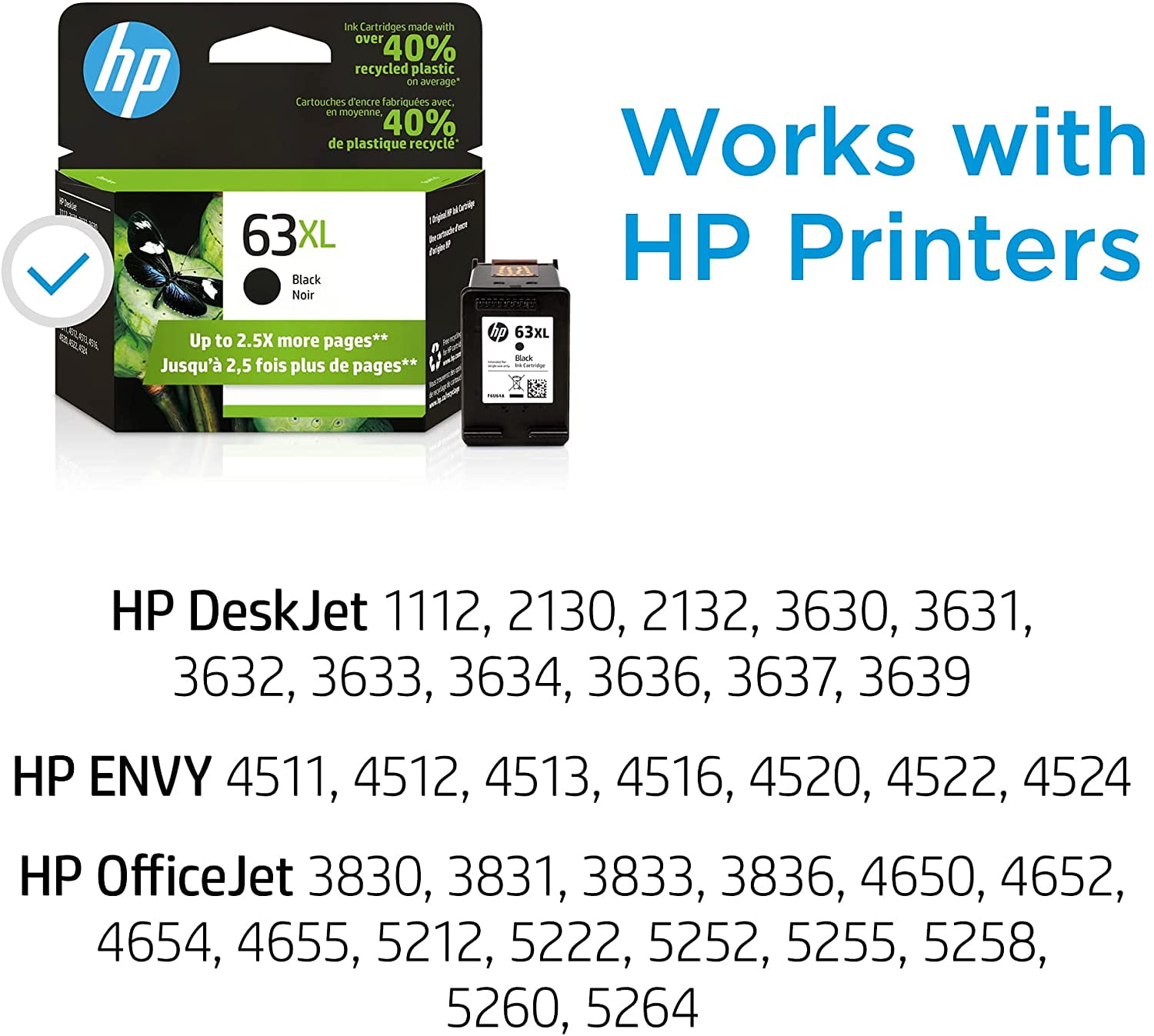 $94.85Original HP 63XL/63 multipacks provide the right amount of ink for everyday printing. Get the HP quality you trust and keep printing with Original HP 63 ink cartridge 2-packs. Ensure vivid presentations, photos, and other home projects every time you print. This cartridge provides all the ink you need to print, so you can create stunning prints at home. Trust HP printer ink for home printing and get back to the things that matter.