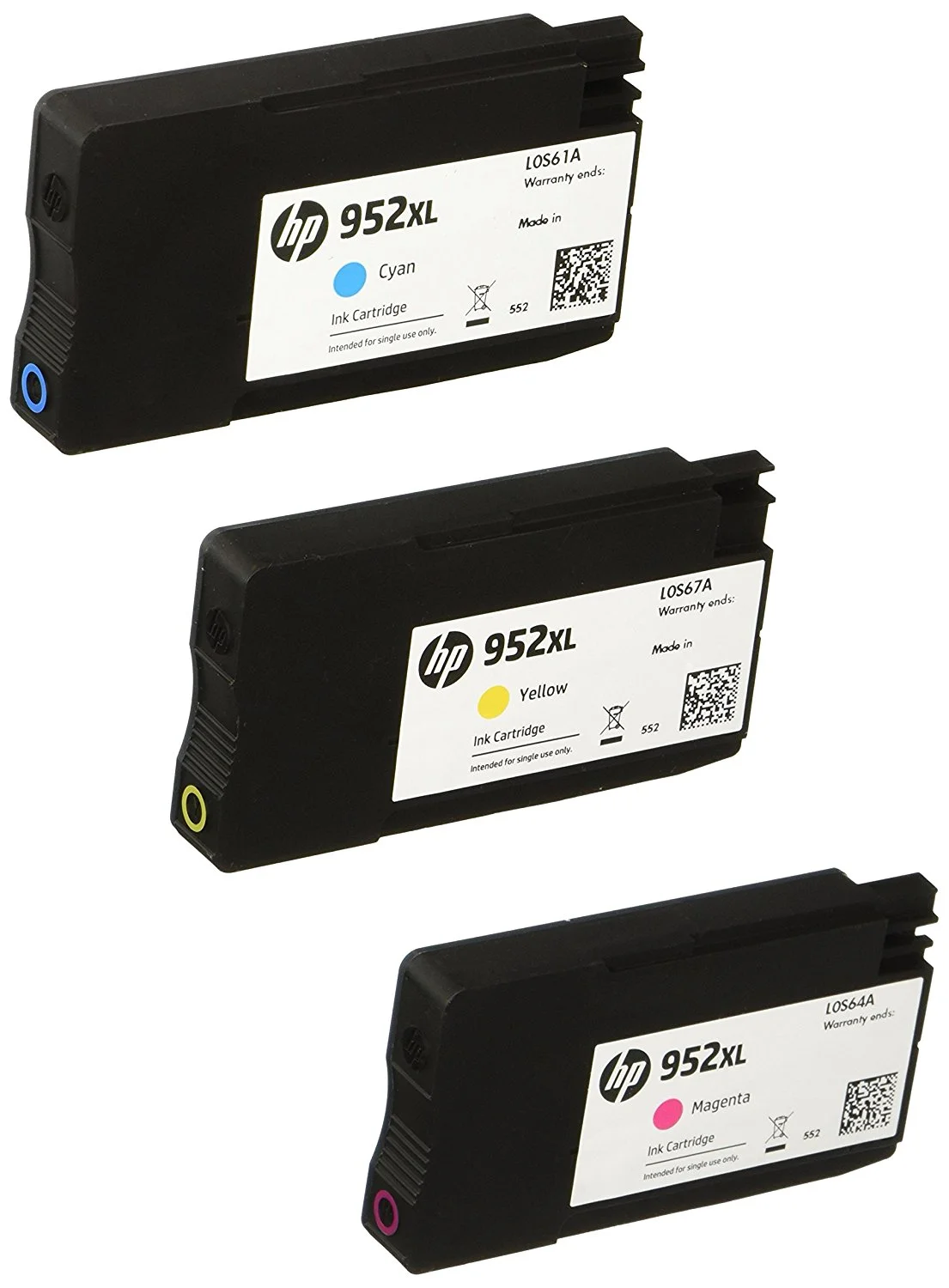 $120.36HP 952XL High Yield Original Ink Cartridges, Cyan/Magenta/Yellow, 3 Pack; when you are looking for the very best ink. Don’t settle for ersatz knock-offs when you can have the best and replace your printer cartridges with the original. The original XL high-yield cartridges print a greater quantity of pages and will help you save on expenses.