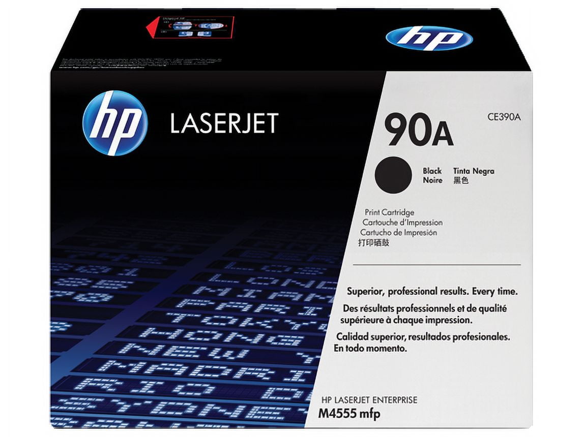 $229.53Overview Increase office efficiency—produce professional-quality documents consistently. Print at high speeds without sacrificing quality, and get increased energy-savings. Original HP toner cartridges are designed for optimal performance with HP printers. Ideal for offices that require consistent, professional-quality documents from a toner cartridge that contains energy-efficient toner. Take pride in high-quality prints with Original HP Toner. Print professional-quality documents consistently and maintain peak productivity, using Original HP LaserJet toner cartridges with enhanced HP toner. The choice you can trust to help avoid reprints and wasted supplies. Choose Original HP Supplies, designed for reliability and consistency. Benefits Reliable, Original HP cartridge Standard size, when you need just one ~10,000 pages Features Maximize uptime with Original HP toner cartridges. Optimize printing performance with enhanced HP toner. Achieve professional-quality, time after time. Make a professional impression with bold, crisp text and sharp, black graphics. Print responsibly and easily recycle cartridges. Original HP LaserJet toner cartridges with energy-efficient toner enable an energy savings of over 18% on every page you print. Disclaimers Program features and availability may vary by country. For more information, visit Energy savings based on comparing conventional toner and print system used in HP LaserJet M4345 MFP series with energy-efficient HP toner and print system used in HP LaserJet Enterprise M4555 MFP series. Testing per Energy Star Typical Electricity Consumption test. Actual savings may vary. Compared with 1992 baseline. Program availability varies. HP toner cartridge return and recycling is currently available in more than 50 countries and territories around the world through the HP Planet Partners program. For more information, or to request return envelopes and bulk collection boxes, visit . The HP 90X LaserJet Black Toner Cartridge not included; please purchase separately. Declared yield based on ISO/IEC 19752 and continuous printing. Actual yields vary considerably based on images printed and other factors. For details see .
