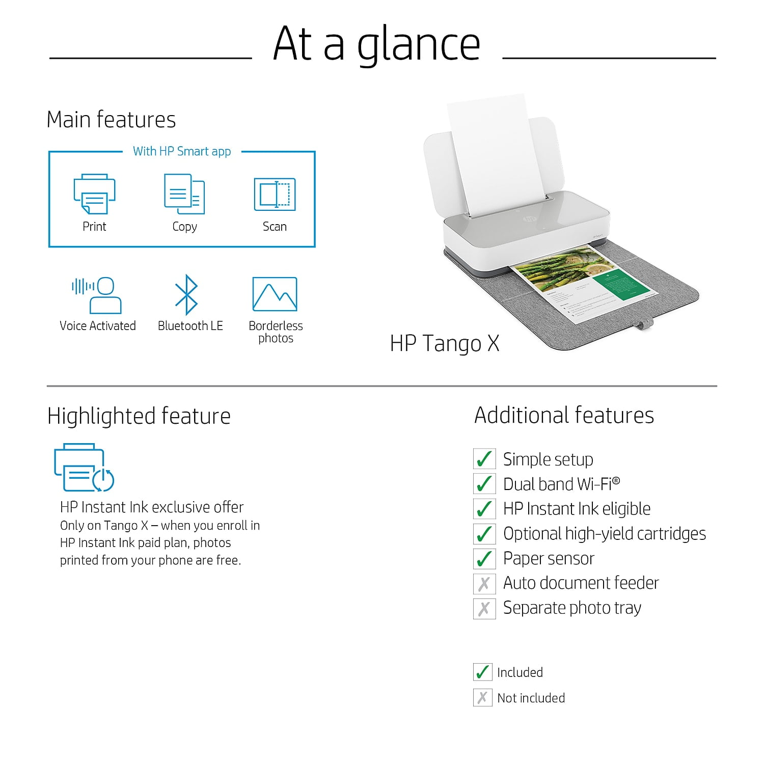 $137.51About HP Tango Smart Home Printer: *HP Instant Ink Delivery Service: ink ordered by your printer, delivered to your door for as low as $2.99 per month, including ink cartridge, shipping and recycling. No annual fee; you can change or cancel at anytime. The World’s First Smart Home Printer – Easily print from a variety of smartphones, tablets, and laptops from anywhere – whether a coffee shop or a friend’s house – using this wireless printer Print From Virtually Anywhere – Print documents and photos from the cloud and social media and scan with your smartphone camera using the HP Smart app and this smartphone printer Voice-Activated, Hands Free Printing – From shopping lists to crossword puzzles, use the Tango printer to print hands free with Google Home and Microsoft Cortana Free Photo Offer – Print photos up to 5×7″” from your smartphone for free when you purchase a paid HP Instant Ink plan–Tango will order ink before you run out and deliver it to your door Reliable, Easy Connections – Easily set up your HP Tango phone printer in minutes from your smartphone, and enjoy the reliability of dual band Wi-Fi every time you print High-Quality and Durable Prints – Count on Original HP 64 ink cartridges to deliver stunning, borderless color photos up to 5×7″ and sharp documents with crisp text One-year Limited Hardware Warranty – 24-hour, 7 days a week Web support at HP.com/ContactHP What’s in the box: HP Tango Printer with output tray Ink cartridges Power Cable Instant Ink Flyer Ink Caution Flyer Setup poster Media Kit Adv Photo 4×6 5 sheets