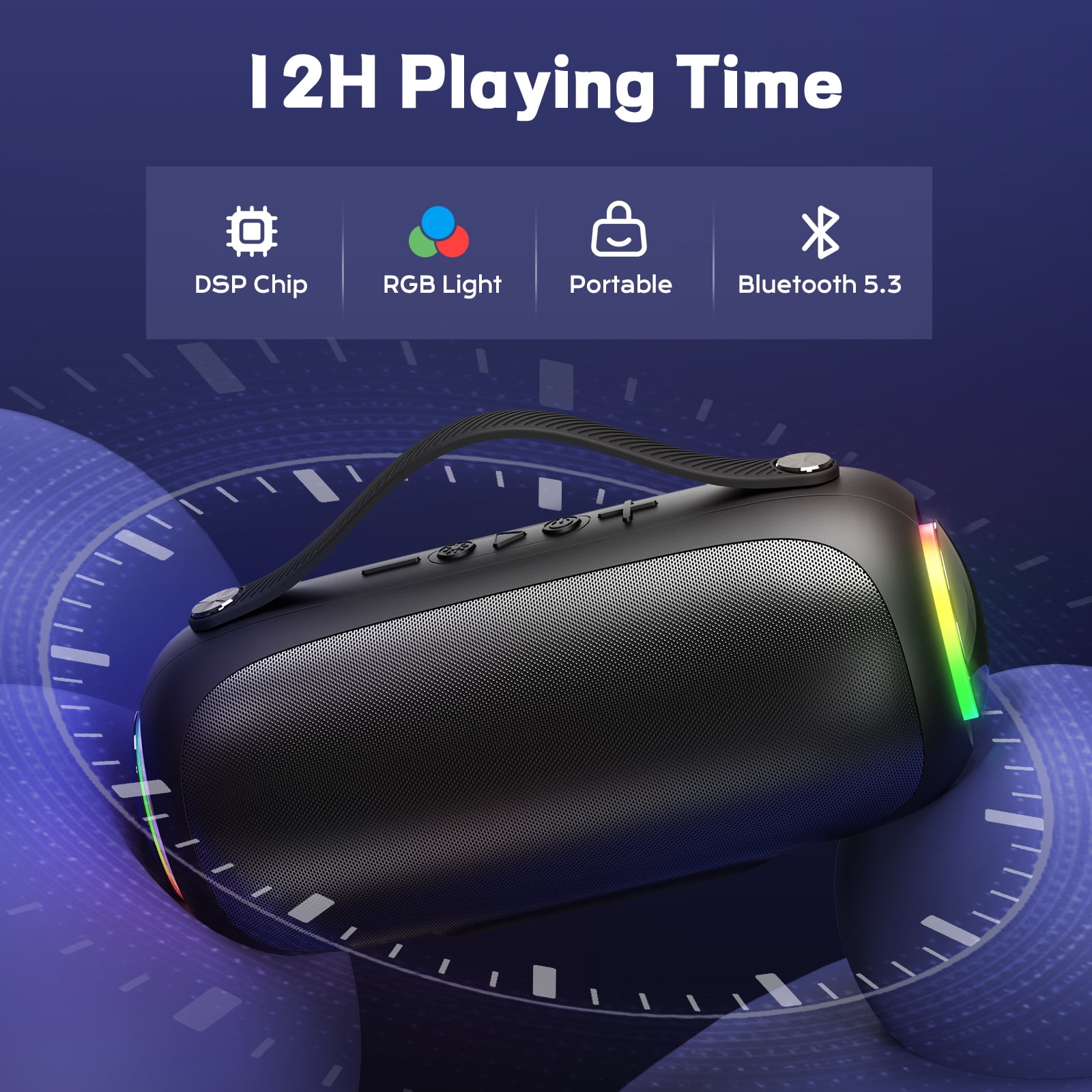 JYX Bluetooth Speaker, Portable Speaker with DJ Lights, Deep Subwoofer, Wireless Waterproof Outdoor Speaker for Pool Beach Party, D20