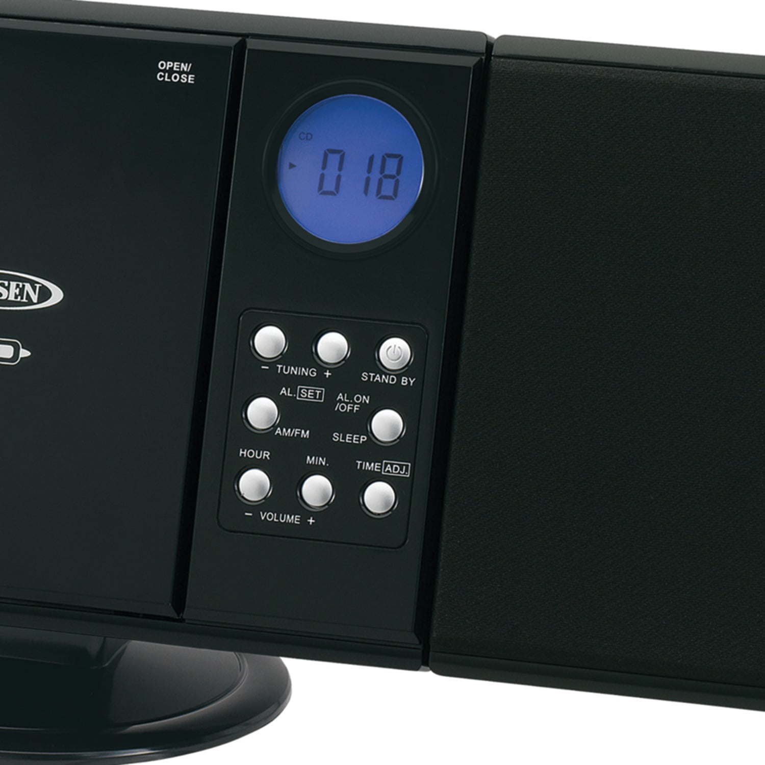 $55.89Original price was: $55.89.$40.85Current price is: $40.85.Add entertainment options to your home without taking up floor space with the Jensen JMC-180A Wall Mount CD player. It features a vertically positioned disc loader and offers the option to repeat a single track or an entire album. Program playlists or skip to the song you want. You can also set an alarm as a reminder or a wake-up call. Pick up your favorite local broadcasts and save up to 20 stations or connect a portable music player to the auxiliary port. This Jensen wall-mountable CD system includes a remote control and features a digital display to serve as an intuitive interface.