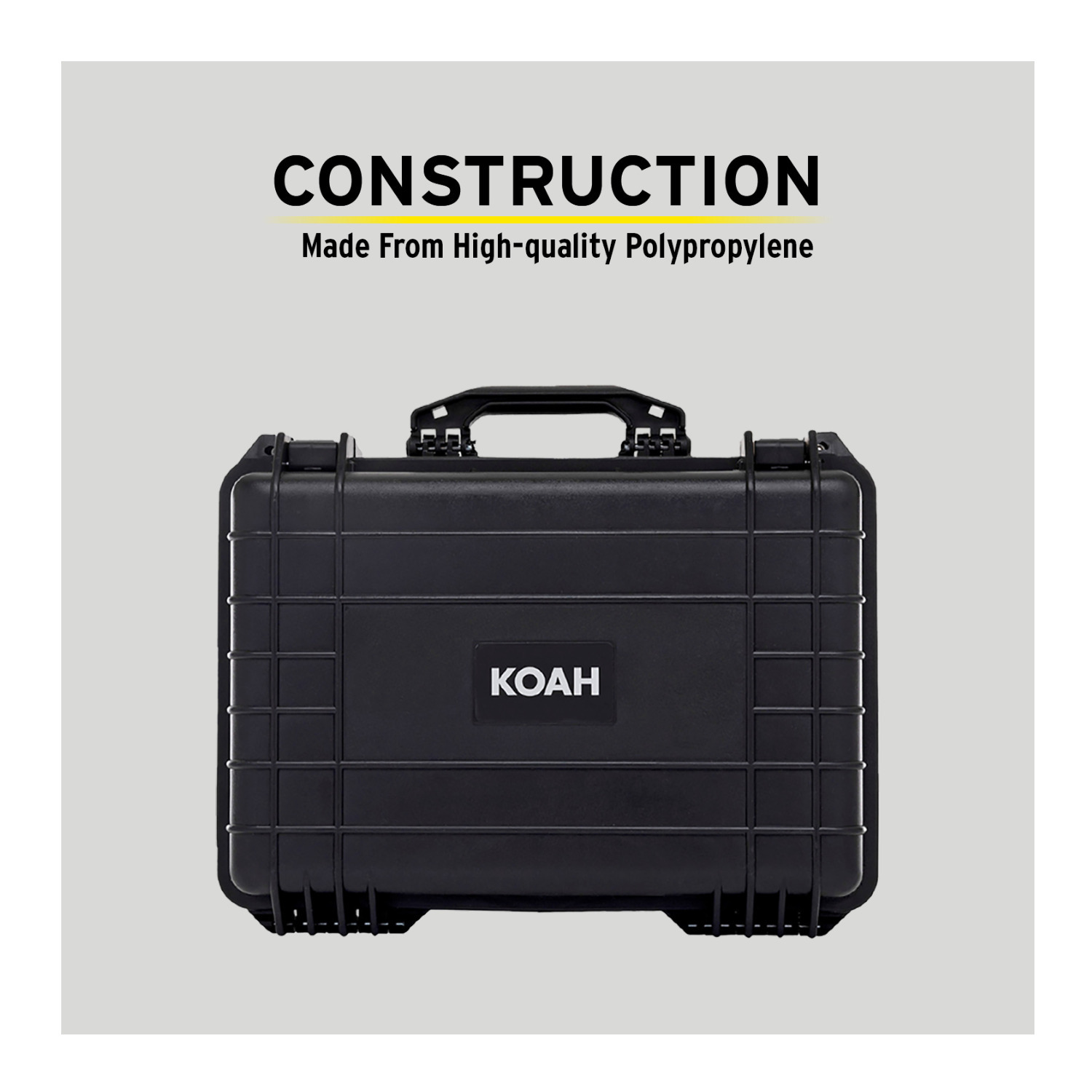 $85.99Original price was: $85.99.$68.79Current price is: $68.79.The Weatherproof Hard Case with Customizable Foam by Koah is perfect for storage and transport of action cameras, camera bodies, lenses, or ammunition. Constructed with high-quality polypropylene, this injection-molded hard-shelled case complies with the high protection standards. The fully customizable foam keeps your valuables protected from the shocks and bumps on the road. Durable and Functional Construction The reinforced stainless steel provides added strength and extra security while the solid construction ensures durable use. The high-quality pressure valve releases built-in air pressure while keeping water molecules out. Smarter and easier to open, this hard case features an easy-to-open with a light pull in just seconds thanks to its latches design and is also easy to go with the included portable handle design.