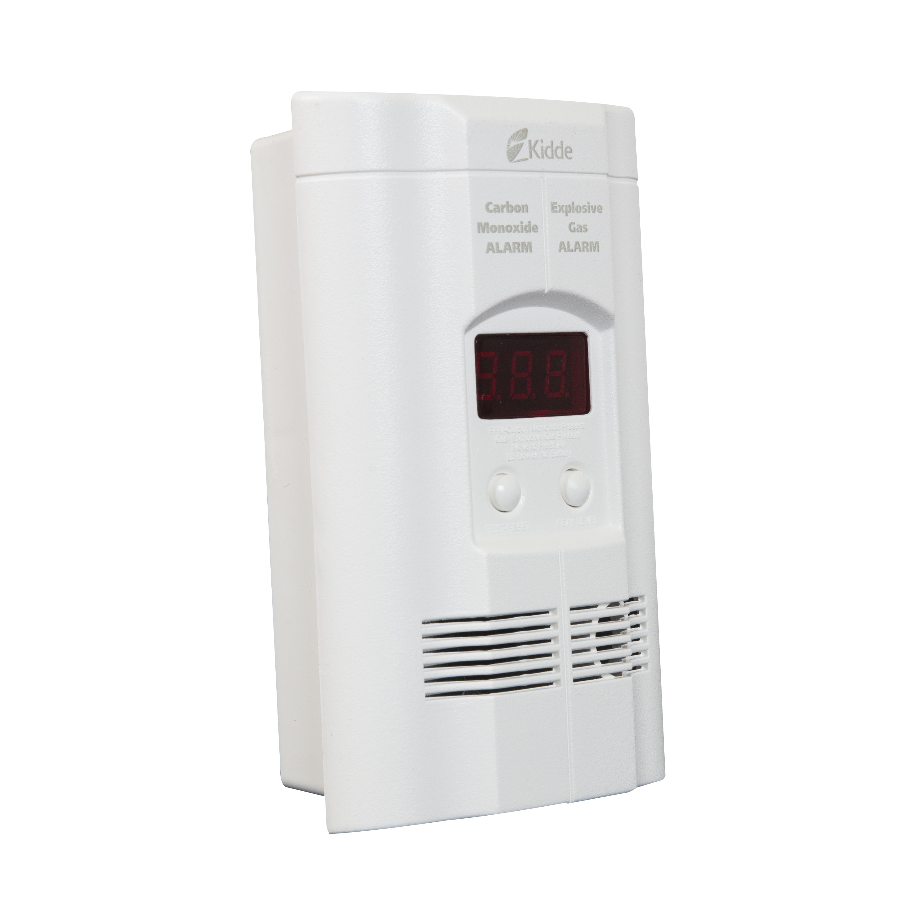 $49.42The Kidde KN-COEG-3 AC powered, plug-in CO and explosive gas alarm protects you and your family from two deadly threats. The KN-COEG-3 includes 9V battery back up that provides protection during a power outage, when AC-only units can not provide protection. By pressing the Peak Level Button you can see the peak CO level recorded by the alarm since it was last reset or unplugged. The continuous digital display shows you the level of carbon monoxide (if any) the unit is sensing as well as if gas is present. The gas sensor is a metal oxide sensor designed to detect natural gas (methane) or propane.The Kidde KN-COEG-3 provides you and your family a level of protection that you have come to expect in a Kidde product. The alarm is easily installed in any of your AC wall outlets, giving you the choice of a direct-plug, a 6’ power cord or a table top unit. Depending on how or where you wish to mount your unit, you can get exactly what you need for a perfect application. The KN-COEG-3 is UL listed and offers a 7-year life and a 5-year limited warranty.