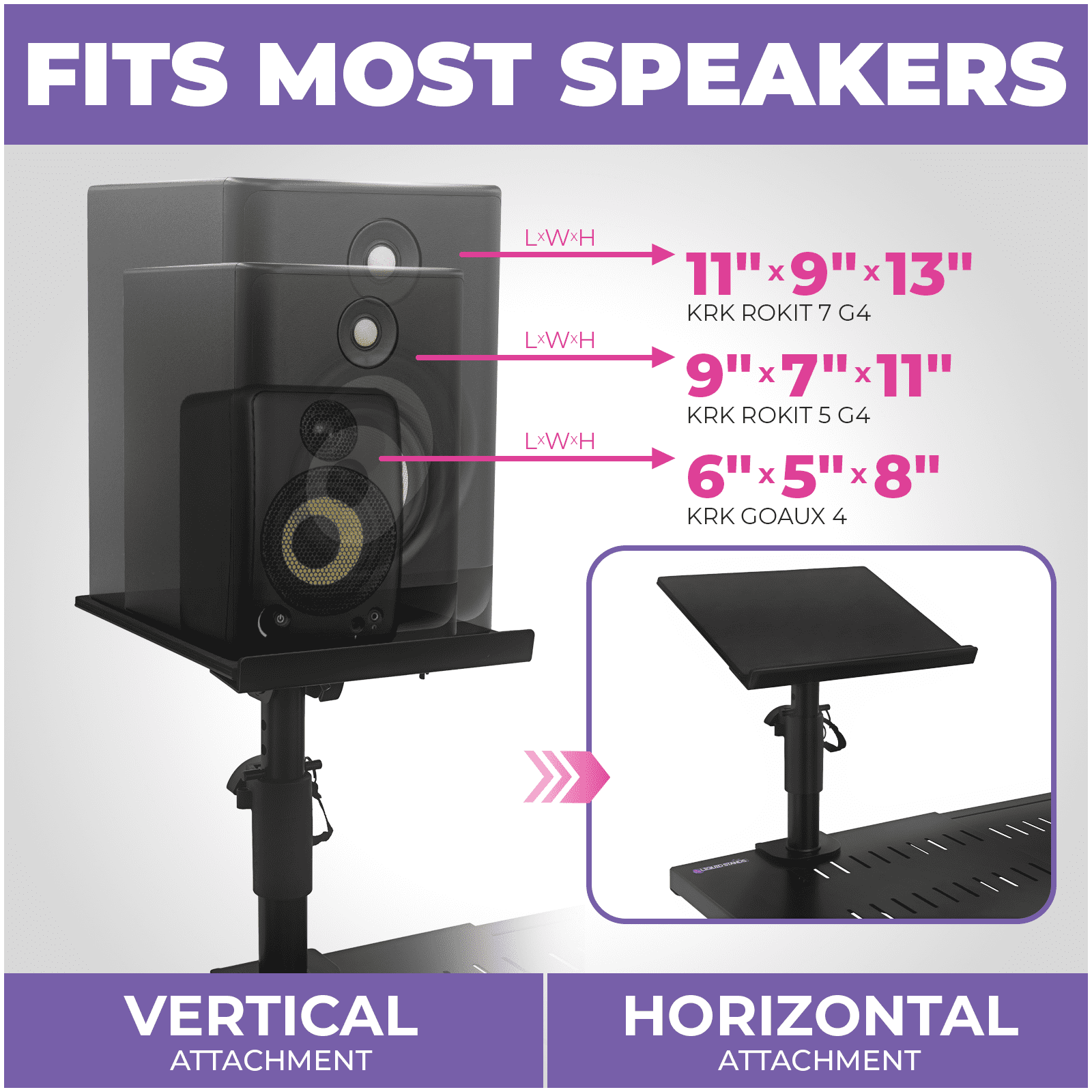 Liquid Stands Studio Monitor Stands – Music Studio Desktop Speaker Stands – 2 Pack 12×9 Clamp-on Adjustable Short or Tall Monitor Speaker Stands for Music Studio Desk Speaker Stand Mount with Tilt