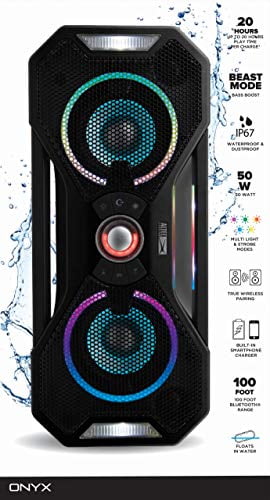 $43.53The Altec Lansing HydraBlast Everythingproof speaker is the perfect party companion. With up to 20 hours of battery life plus built-in LED light modes, the party atmosphere and music will be hard to top! Qi Wireless charging keeps not only your phone but the party alive, simply drop a Qi-compatible device atop the speaker and watch it charge! Don’t have a phone with wireless charging – the HydraBlast comes equipped with a USB smartphone charger for added functionality. With an IP67 Everything Proof rating + antimicrobial protection (repels 99.9% of bacteria), nothing can stop the HydraBlast. Pair two HydraBlast’s together for that surround sound excitement. The party just got better with Altec Lansing!