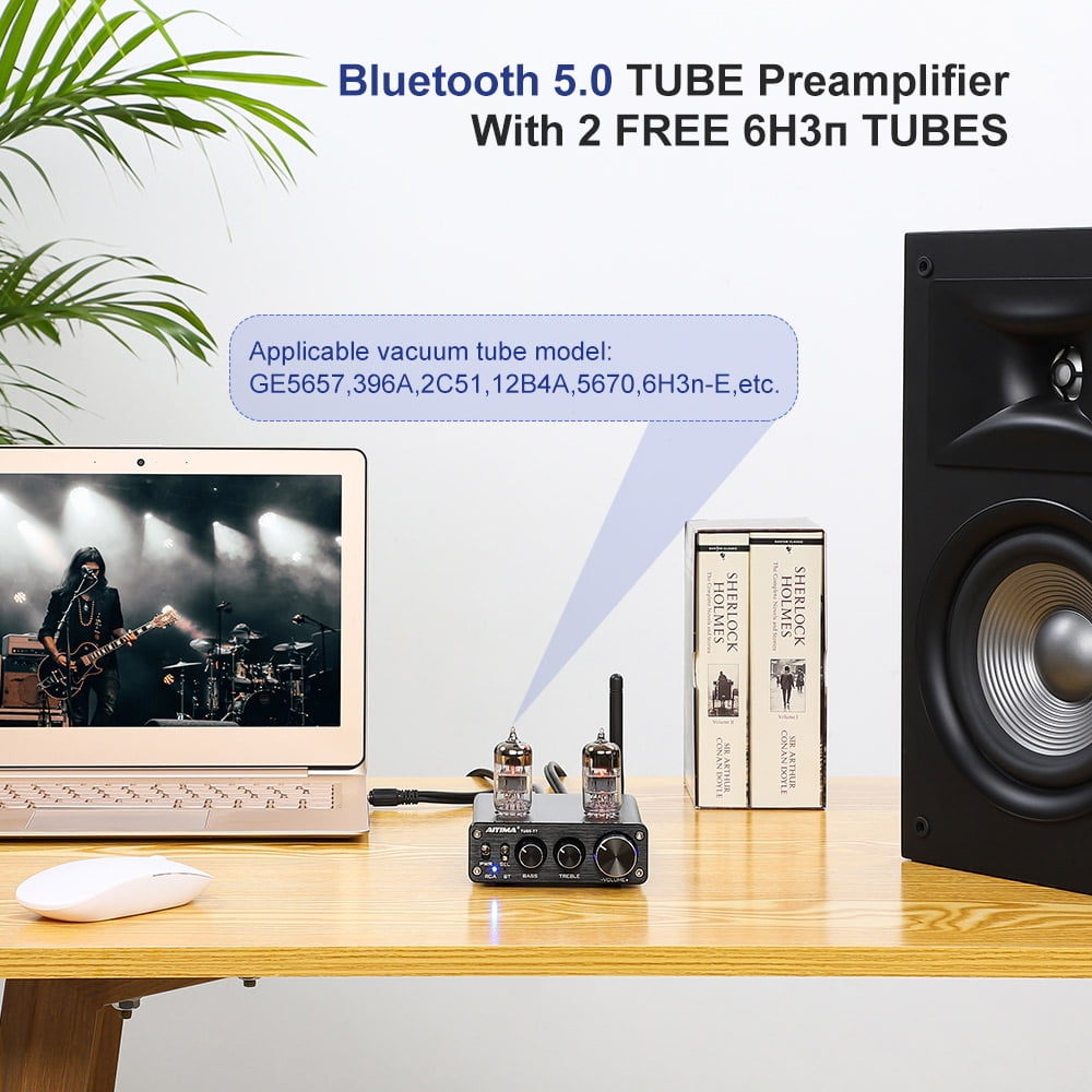 AIYIMA Tube T7 Audio 6N3 Tube Preamp Bluetooth 5.0 Warm Vacuum Buffer Preamplifier with Treble Bass Tone for Home Theater System HiFi Stereo Vacuum Bile Tube