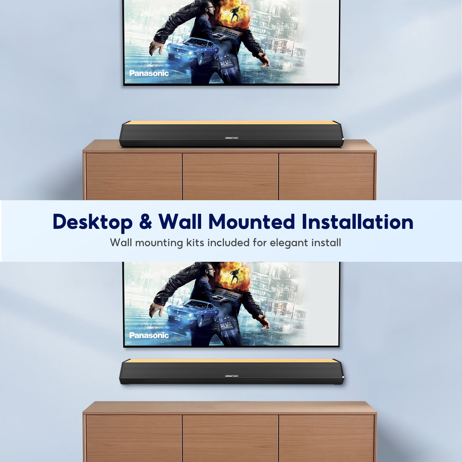 AIYIMA Bluetooth 2.0 Channel HDMI-ARC 28″ Sound Bar with Remote Control, Black and Brown