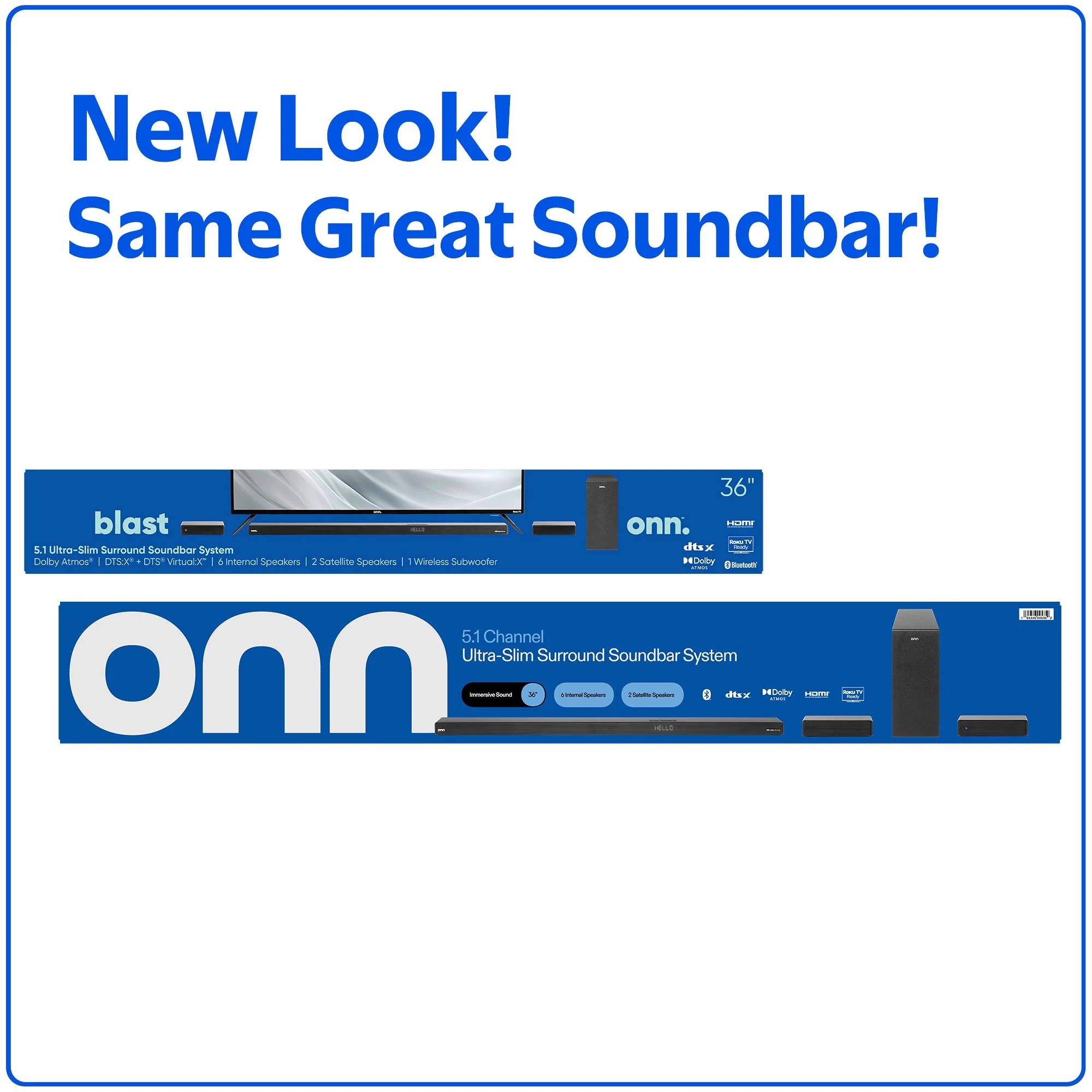 $155.66Boost your sound with 700 watts of peak audio power from our onn. 5.1 Ultra-Slim Surround Soundbar System! Bluetooth wireless technology can connect all of your devices, letting you listen to your favorite audio in cable-less, flawless sound, or just connect directly through HDMI, Optical, USB or AUX wired connections. Dolby Atmos and DTS:X + DTS Virtual: X sound options will deliver awe-inspiring, immersive, cinema-like audio adventures. We’ve even included two satellite speakers to enhance that incredible surround sound experience, plus a wireless subwoofer for deeper bass! Blast onn. We’re onn. to something here. We took the hassle out of buying electronics and built a brand that’s fresh and simple. With delightful pops of color, finding the right product has never been easier. Say goodbye to stressful decision-making and fear of the electronics aisle. Our mission is simple… to deliver great products and make it easy. Choose onn. and get back to using your brainpower for the important things in life… like pondering the question, “What should I binge watch this weekend?”