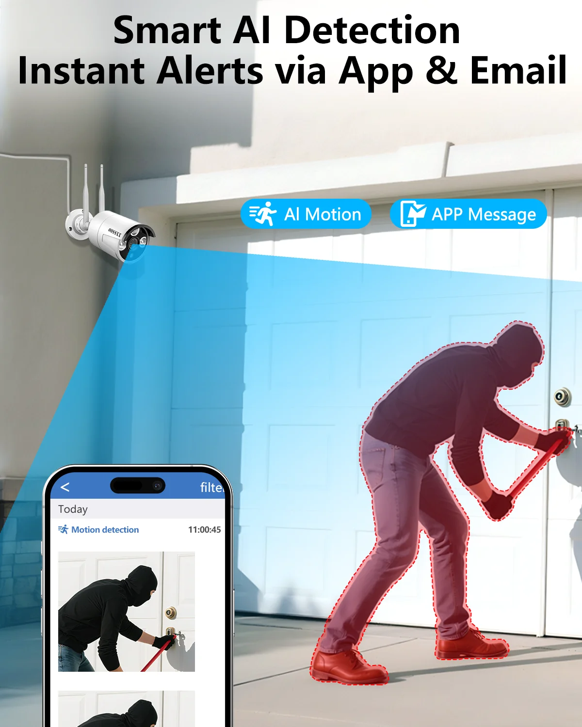 $171.99Original price was: $171.99.$154.79Current price is: $154.79.(Dual Antennas for Wi-Fi Enhanced) AI Human Detected 2K 3.0MP Wireless Security Camera System, Surveillance NVR Kits with 2TB Hard Drive, 4Pcs Outdoor WiFi Security Cameras, with Audio, Night Vision