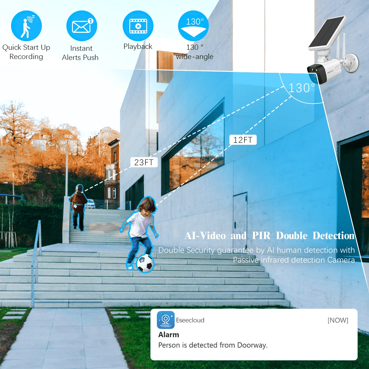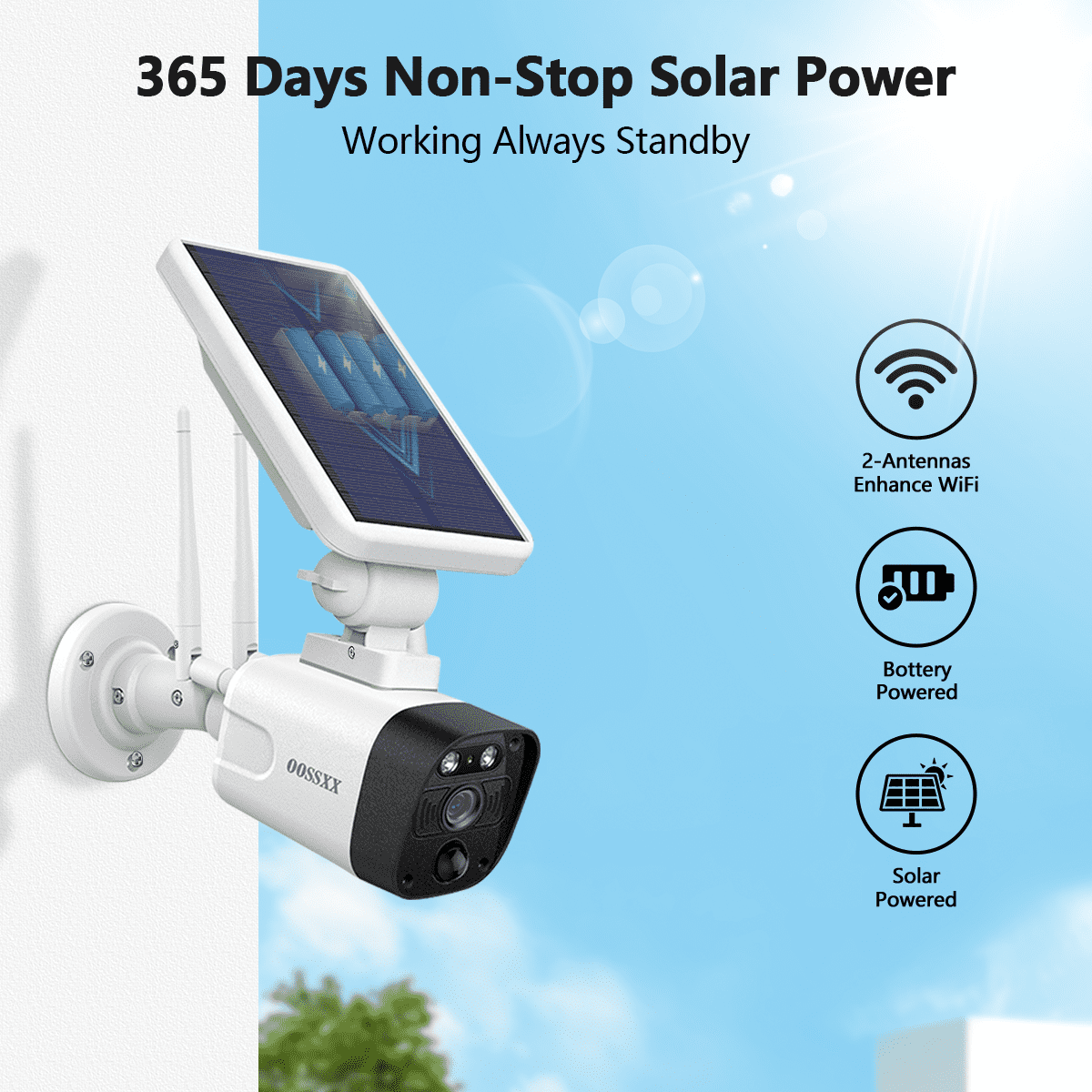 OOSSXX Solar Security Cameras Wireless Outdoor,Dual Antennas Surveillance Camera System without Hard Drive