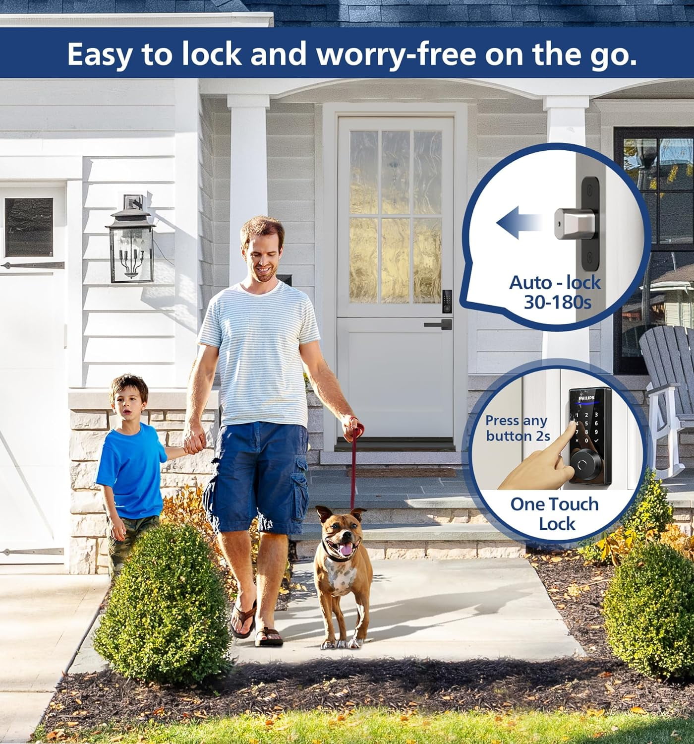 $68.79Upgrade your home security with the Keyless Entry Touchscreen Digital Keypad Smart Electronic Deadbolt Door Lock. Featuring two convenient unlocking methods – PIN code and One-time PIN code, this durable and secure lock allows you to easily share access with family, friends, or guests. With auto-locking capabilities, privacy mode, and an arming alarm function, this lock provides comprehensive protection for your home. Crafted from high-quality metal materials and backed by a limited lifetime warranty, this easy-to-install door lock is the perfect solution for enhancing the safety and convenience of your entryway.