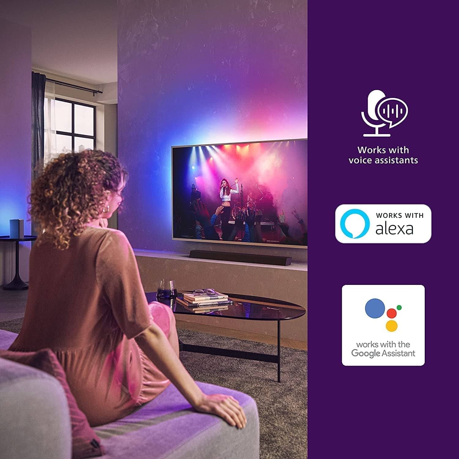 $193.72Rich sound for every detail520W Max 2.1 CH wireless subwoofer Dolby Digital Plus HDMI ARC 2.1 channels. 8″ wireless subwoofer for deeper bass This soundbars 2.1 channels and wirelessly connecting, 8″ subwoofer put you in the center of the action, surrounding you in rich and virtual surround sound no matter what youre watching or listening to. Pick out every detail and lose yourself in the mix! Dolby Digital Plus delivers cinema surround sound Virtualize the cinema experience in your home. This soundbar utilizes Dolby Digital Plus technology to immerse you in waves of virtual surround sound. Crystal clarity and great detail mean you can engage with your media like never before. Two angled speakers for wider sound Widen the sound! Two extra tweeter speakers at either end of the soundbar broaden the audio to give you a clear separation of instruments. Pick them out easily and hear every instrument in the orchestra like youre really in the hall! Roku TV Ready™. Simple setup. One remote. Quick settings. This Philips Soundbar is Roku TV Ready certified. That means youll enjoy a simple setup, one remote, and quick settings when you pair it with a Roku TV. Roku, the Roku logo, Roku TV, Roku TV Ready, and the Roku TV Ready logo are trademarks and/or registered trademarks of Roku, Inc. This product is Roku TV Ready-supported in the United States, Canada, Mexico, the United Kingdom, and Brazil. Countries are subject to change. For the most current list of countries in which this product is Roku TV Ready-supported, please email [email protected]. Stadium EQ Mode. Bring the stadium home Experience the excitement of live sports, right there in your living room. Stadium EQ Mode immerses you in ambient crowd noise, just like you were sitting in the stadium! Be thrilled by every crucial moment and still hear crystal-clear commentary. Conveniently connect all of your favourite sources Stream playlists from your mobile device via Bluetooth. Your media sounds richer, deeper, and clearer through this phenomenal soundbar and subwoofer. You can also connect via Audio in, Optical in, HDMI ARC or use a USB drive for music.
